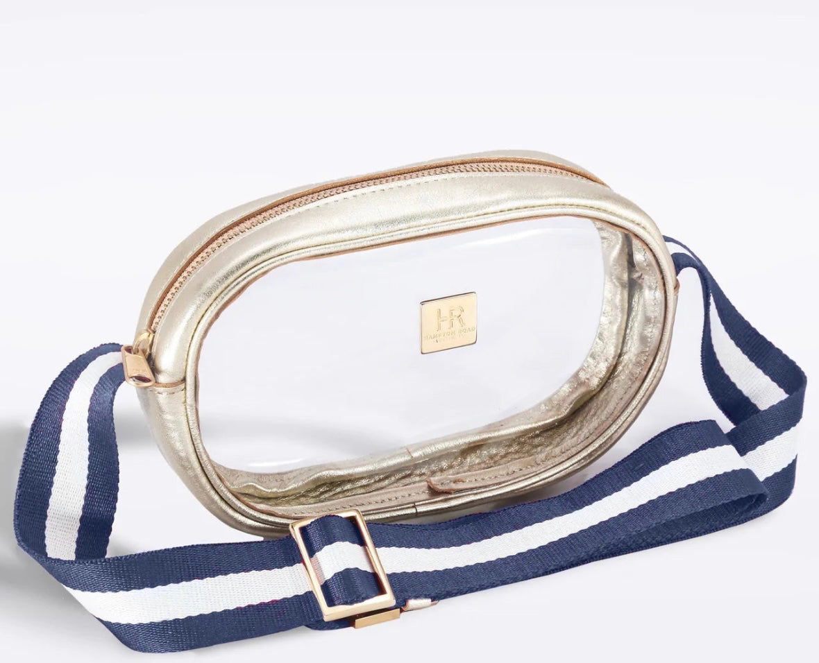 Score major fashion points with our Annie Clear Bag! It'll have you looking like a winner with its chic gold trim, perfect for those days when you're rooting for your team. Stand out from the crowd and show off your style with this Hampton Road must-have!