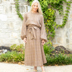 Step into charm with the Apollinaire Plaid Dress! This brown plaid beauty features long sleeves and a playful tie waist that flatters every figure. Perfect for cozy days or casual outings, its timeless pattern and comfortable fit will keep you looking stylish and feeling fun all day long.