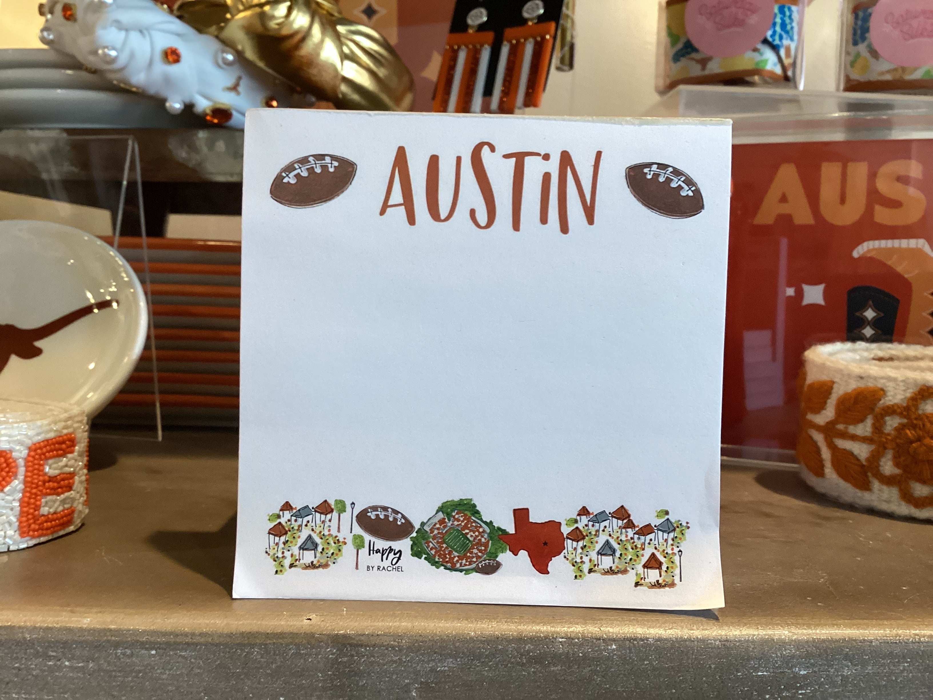Jot down your notes on this cute AUstin chunky notepad! Makes a great grad gift! Measures 5"x5" and contains 100 pages.