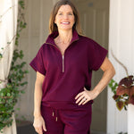 Slip into ultimate comfort with these burgundy soft luxe pull-on shorts, designed to move with you all day. Perfectly paired with our burgundy half zip top, they create a sleek and cozy look that’s as playful as it is practical. Whether you’re lounging or out and about, these shorts bring effortless style to your wardrobe.