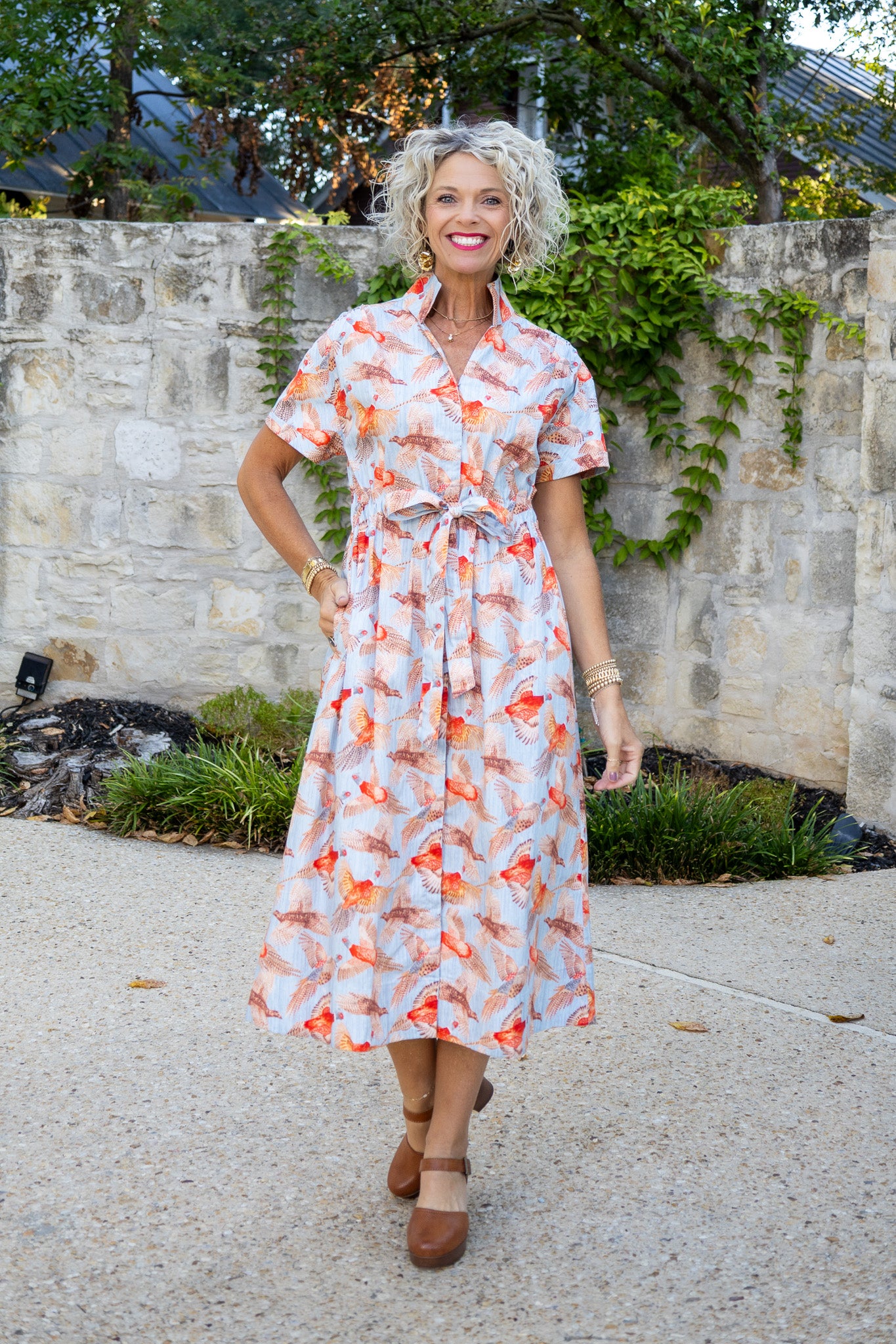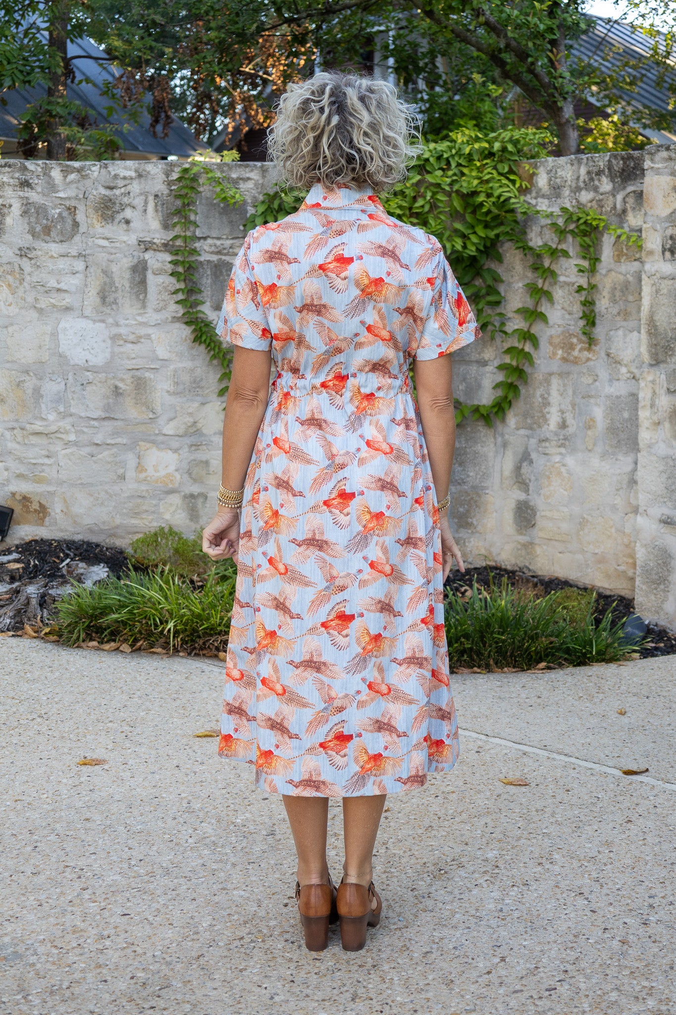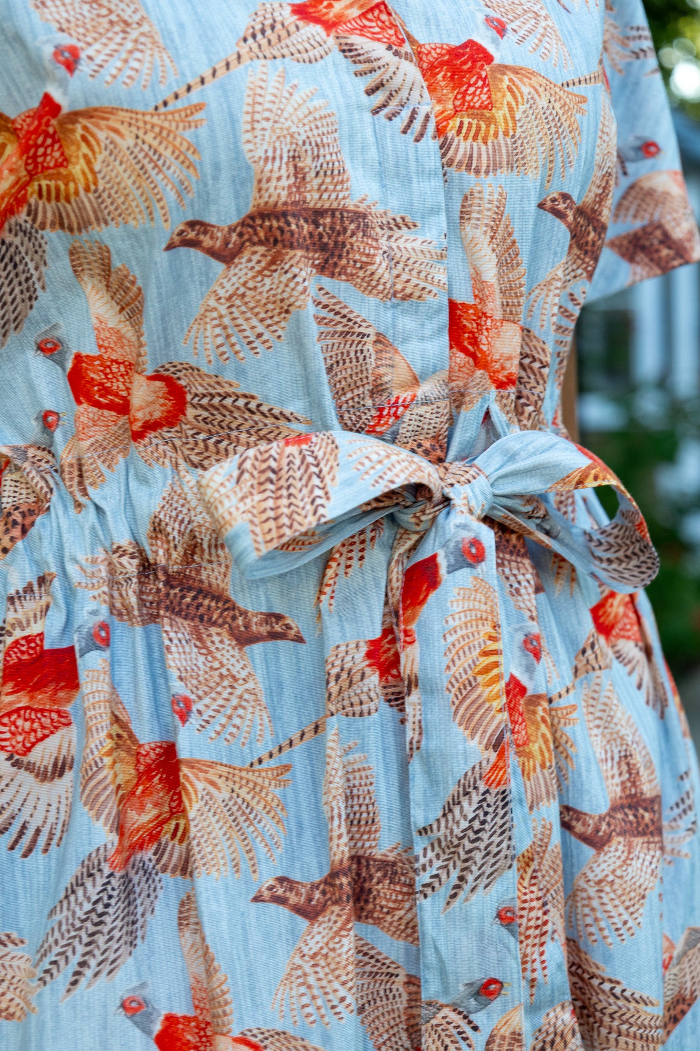 Step into charm with the Bria Pheasant Bouquet Blue Maxi Dress. Featuring a whimsical pheasant bouquet pattern in soothing blue tones, this dress flows effortlessly for all-day comfort and style. Perfect for twirling through garden parties or casual outings, it brings a playful touch to your wardrobe while keeping you cool and confident.