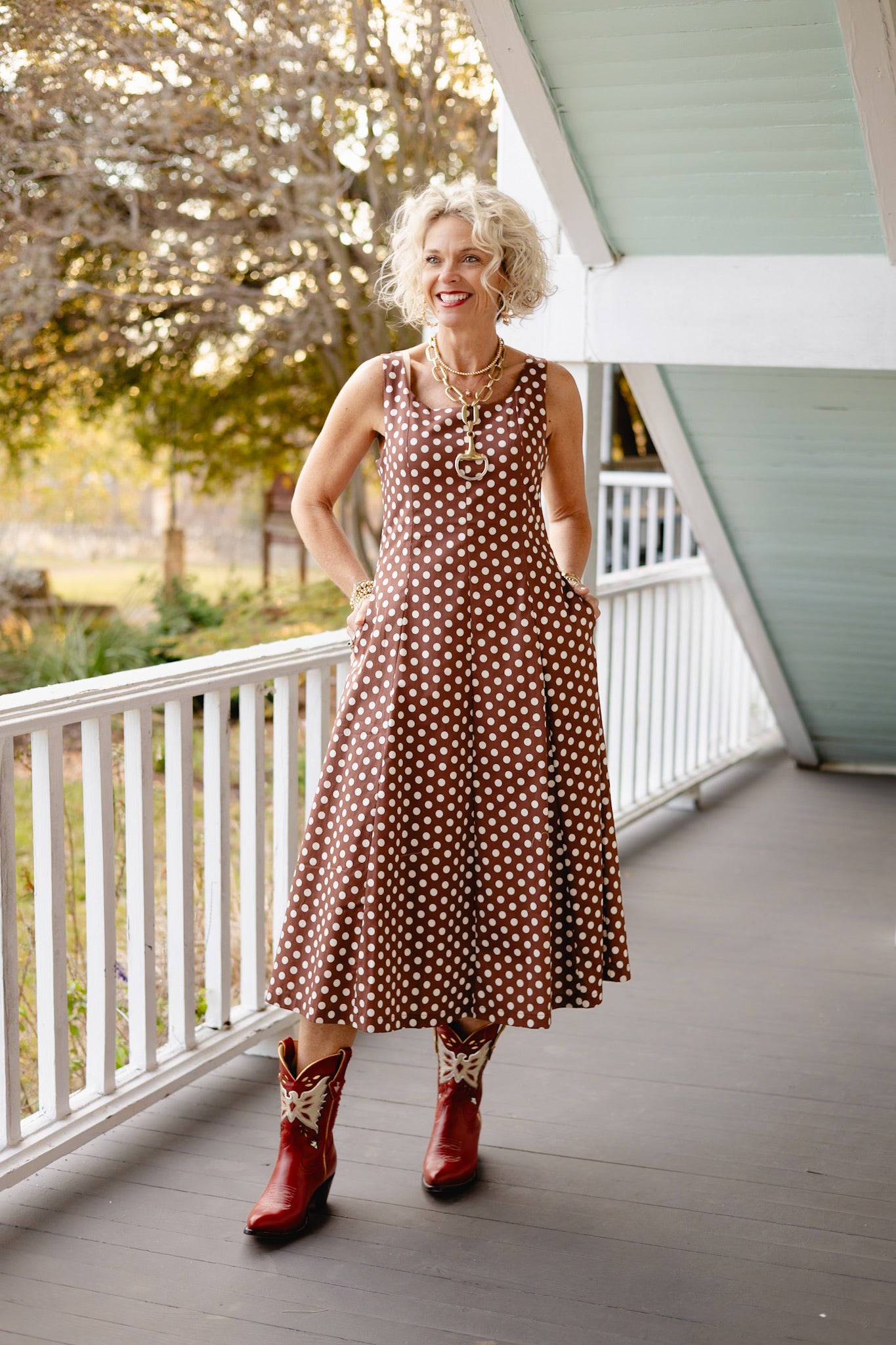 Effortless elegance meets fun with this ivory midi dress featuring a charming black polka-dot pattern. The sleeveless silhouette and flattering scoop neckline create a versatile look perfect for brunch dates, garden parties, or casual outings. The midi length offers timeless appeal while the playful dots add just the right touch of personality. Dress it up with heels and jewelry or keep it relaxed with sneakers—this piece transitions seamlessly from day to night.