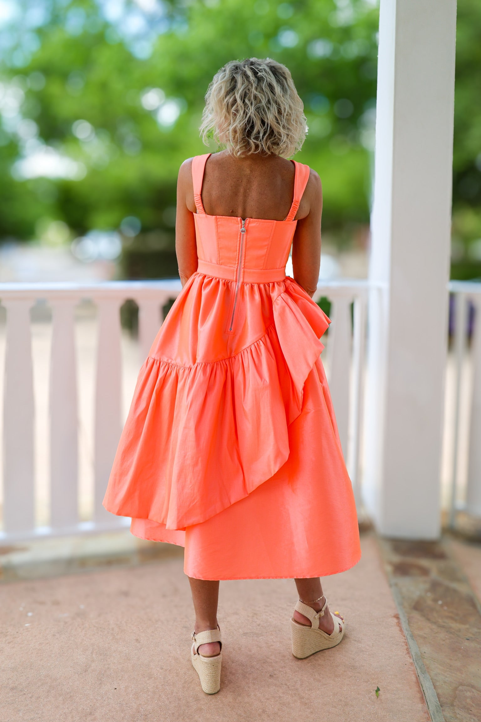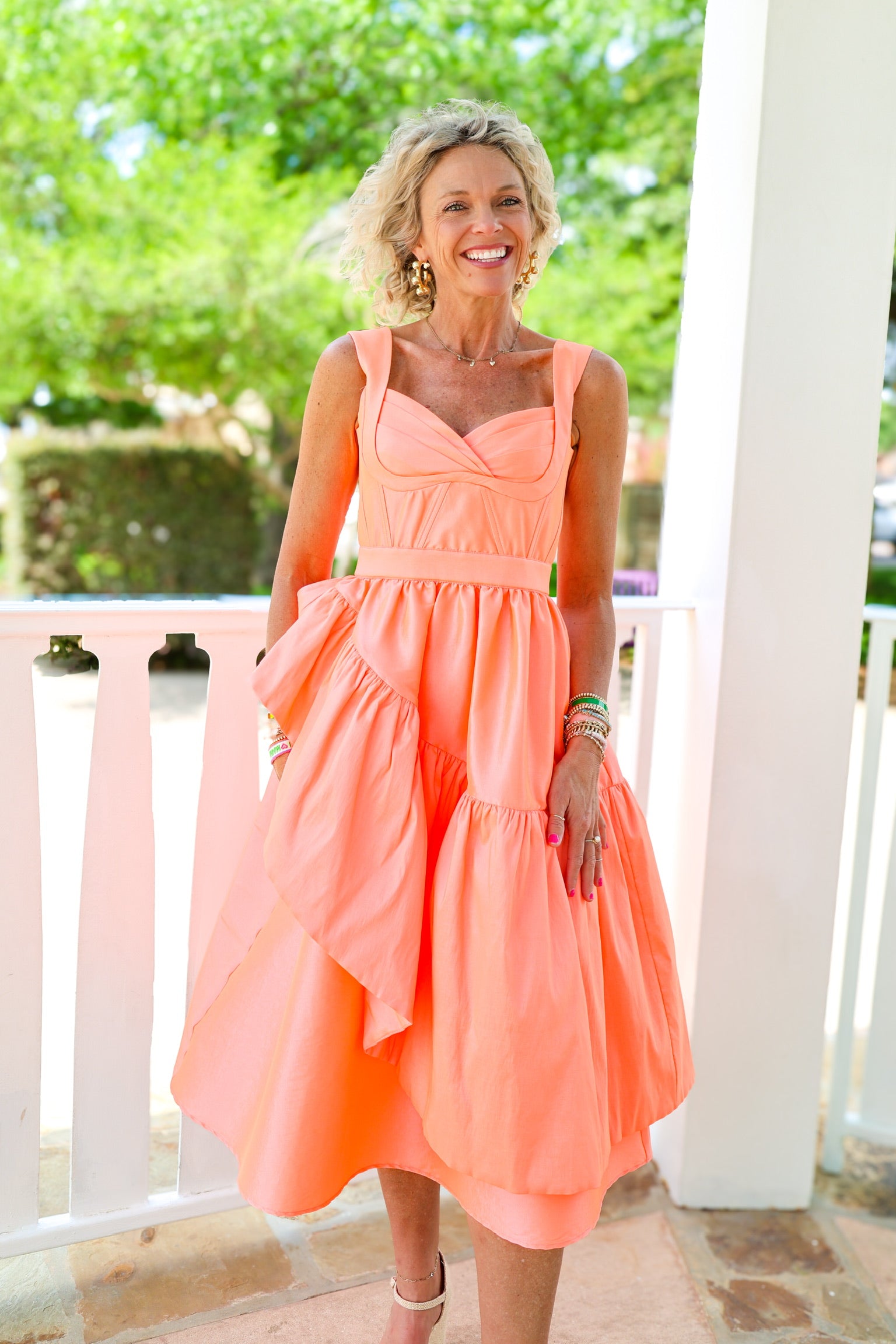 The most sophisticated piece, the Corsica Pink dress is a timeless statement piece featuring a sweetheart neckline, wide straps, cinched waist and a voluminous, assymetric ruffle skirt. Perfect for any formal gathering!
