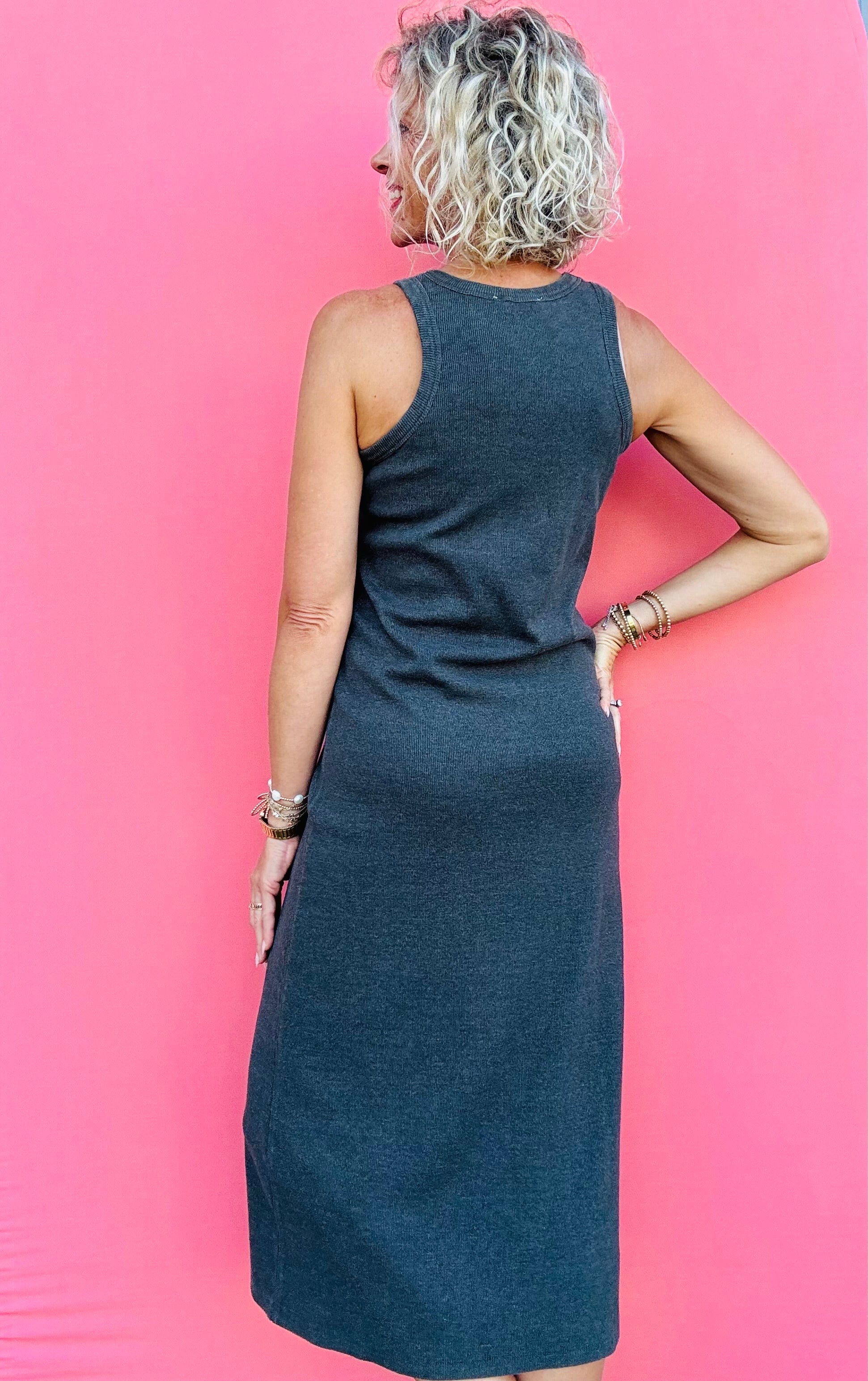 Indulge in the deliciously playful Chocolate Rib Midi. This sleeveless dress is sure to satisfy your sweet tooth with its ribbed texture and midi length. Perfect for any occasion, this dress will have you looking sweet and stylish. (Yum!)