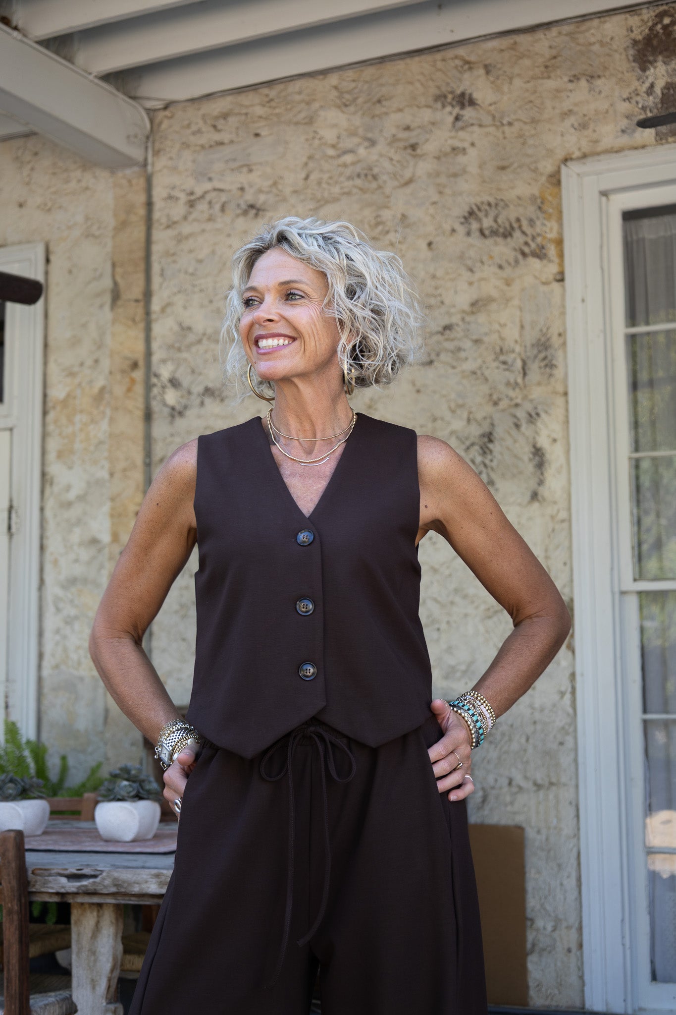 Step up your style game with the Chocolate Naples Vest, featuring three sleek buttons that add a dash of charm to any outfit. Perfect for layering or wearing solo, this vest brings warmth and wit to your wardrobe with its rich chocolate hue and sharp tailoring. Ready to make you look effortlessly cool and feel snug? This vest’s got you covered.