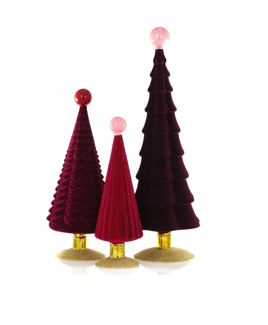 Bring festive flair to your holiday décor with this stunning crushed red velvet tree! Available in three show stopping sizes—10", 13", and 17"—each features luxurious crimson velvet with an elegant gold base that catches the light beautifully. Perfect for tabletops, shelves, or as a statement piece, this tree adds instant glamour and warmth to any room. The rich texture and sophisticated color palette make it an ideal choice for modern, traditional, or eclectic holiday displays. Create a coordinated look by mixing sizes throughout your space!
