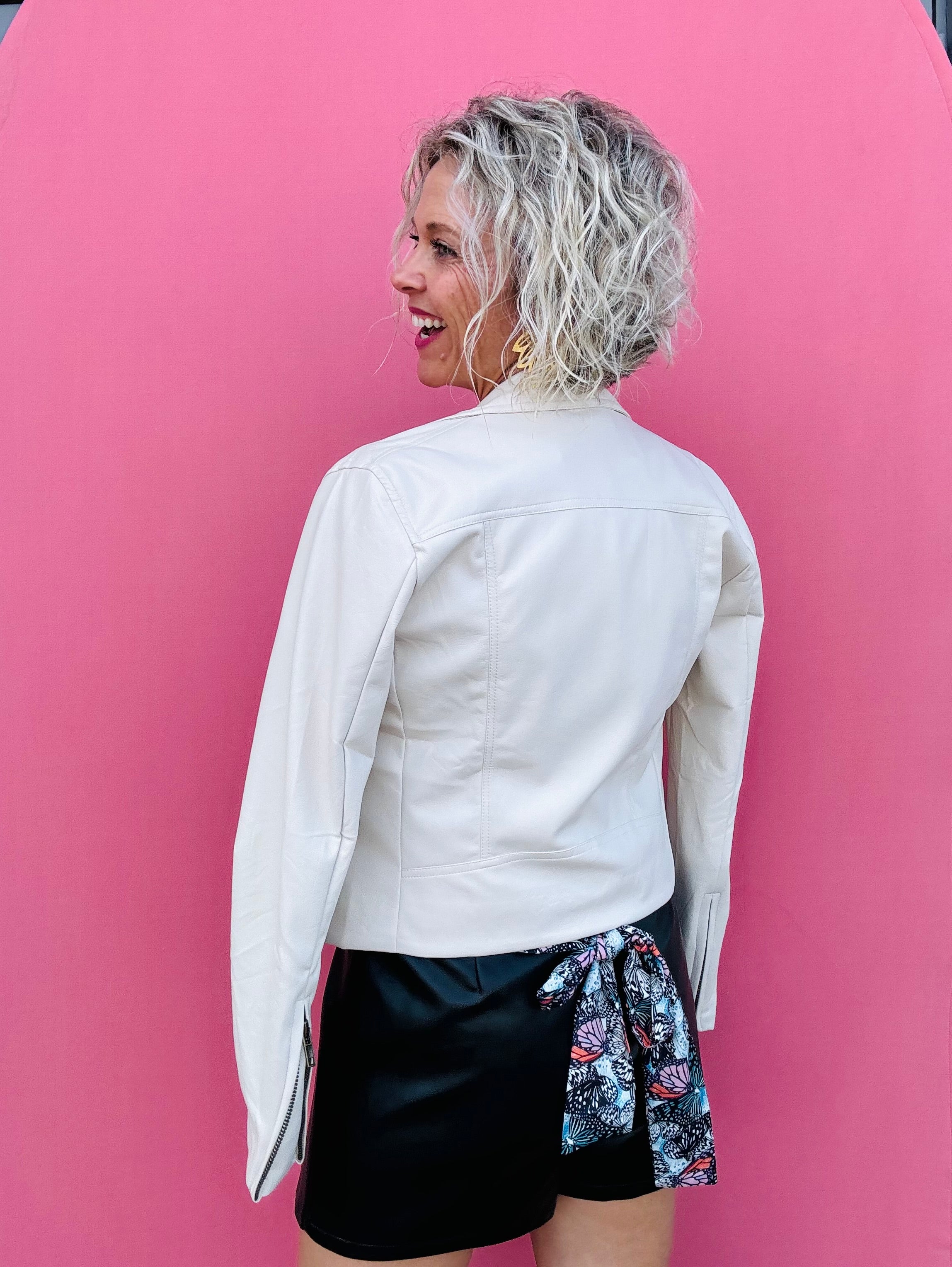 This Cream Leather Bomber is an instant classic! Crafted from faux leather and featuring two dreamy colors, ivory and dark teal, this biker jacket is sure to be your go-to for warmth and style. Layer on the flair and rev up your looks with this leathery look!