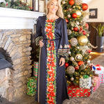 Dawn is a relaxed maxi dress, elevated with a stunning Holiday print, balloon sleeves, and an optional cord belt. She is one of our favorite picks for this time of year, perfect for staying stylish and comfortable throughout the Holiday season.