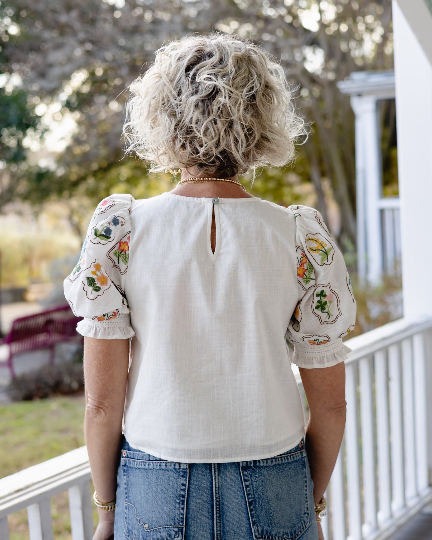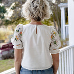 Meet the Etta Top—your new go-to for effortless charm! This crisp white cotton shirt features delicate floral embroidery that adds just the right touch of personality. The sweet puff sleeves bring a playful vibe, while the round neckline and back button closure make getting dressed a breeze.