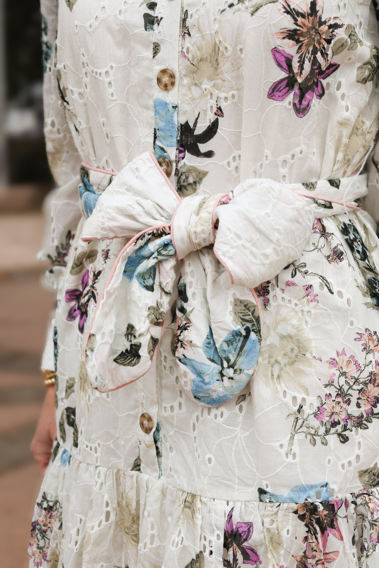 Get ready to turn heads in our Eylet Mini Dress! This ivory dress features a playful pink trim and the cutest floral print. With a waist tie for the perfect fit, you'll feel both stylish and comfortable. Don't miss out on this quirky and fun dress!