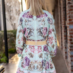 Twirl into spring with this charming green floral mini dress! Featuring long sleeves for versatile layering and a cinched belt to define your silhouette, it's the perfect piece for brunch dates, garden parties, or casual weekend adventures. The delicate floral print brings a fresh, feminine touch while the mini length keeps things fun and flirty. Dress it up with heels or down with sneakers—this little number is ready for anything.