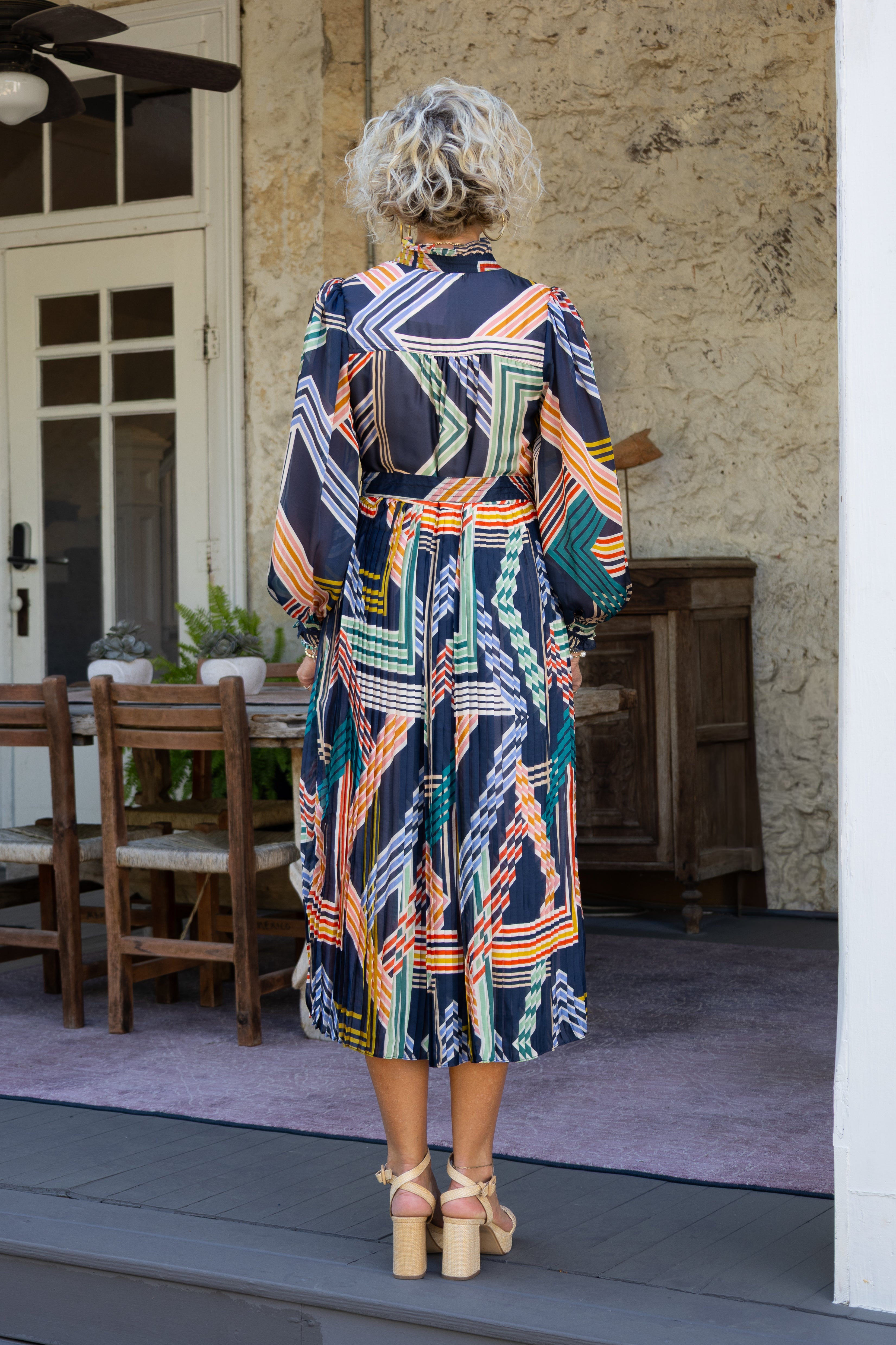 Step into effortless style with the Geo Maxi Dress. Featuring bold geometric patterns, long sleeves, and a flattering belted waist, this dress brings playful sophistication to your wardrobe. The flowing maxi length adds drama while the belt cinches the waist for a chic silhouette—perfect for turning heads from brunch to evening outings.