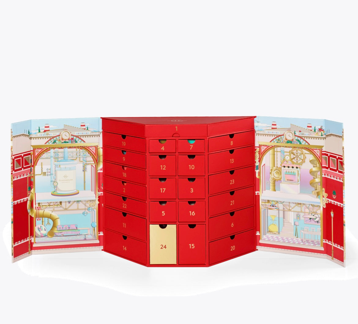 Countdown to the holidays in style with this ornate Glasshouse Advent Calendar. Featuring 24 days of beauty surprises behind each door, you'll be more excited for the holidays than ever before! Plus, the intricate detailing and luxurious materials make this calendar a great addition to your home decor!
