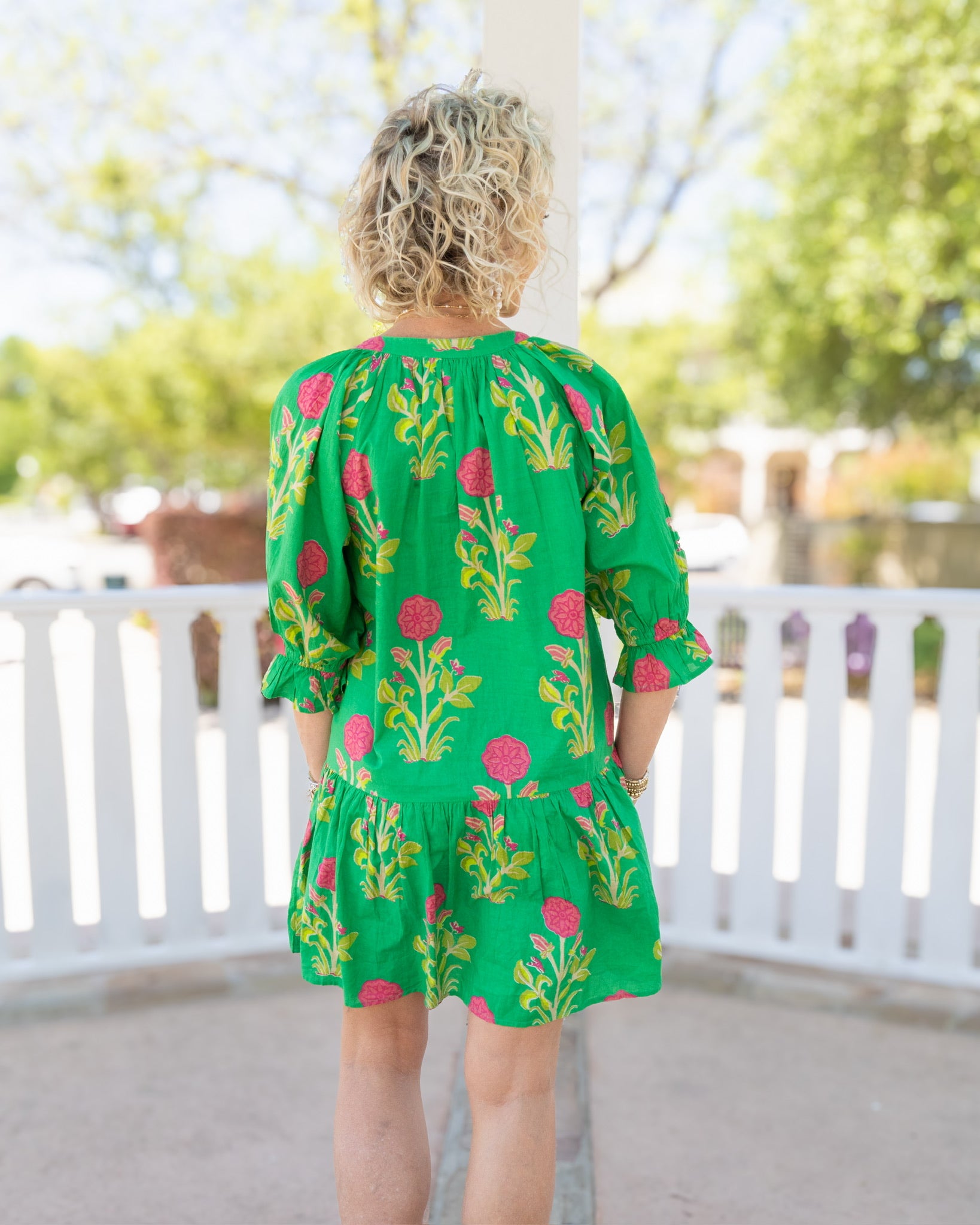 Add a pop of color and fun to your wardrobe with our Green Floral Mini Dress! This bright green, light weight dress features a playful hot pink floral pattern and a v-neck for a flirty touch. Perfect for any occasion, this mini dress is sure to turn heads!