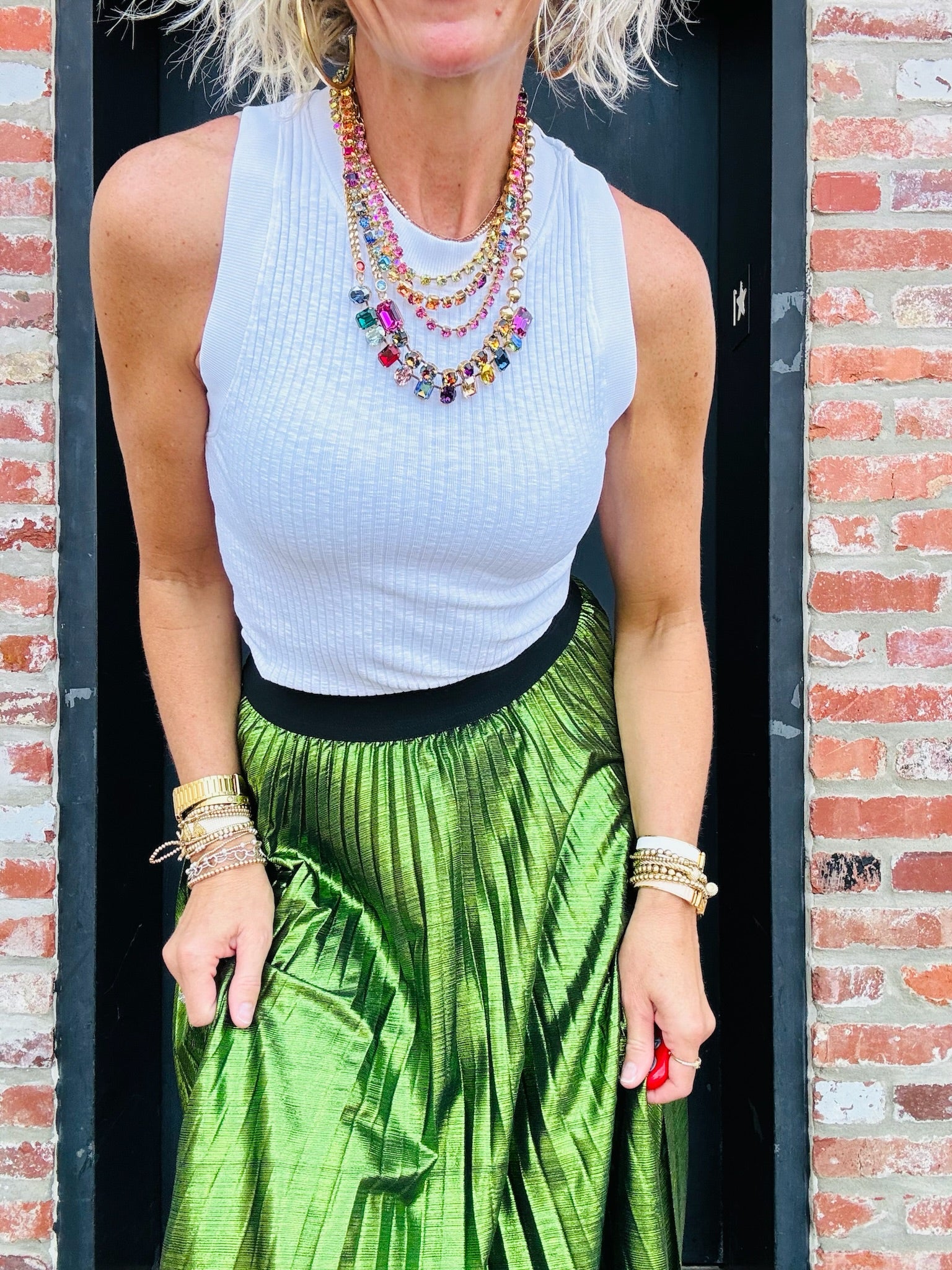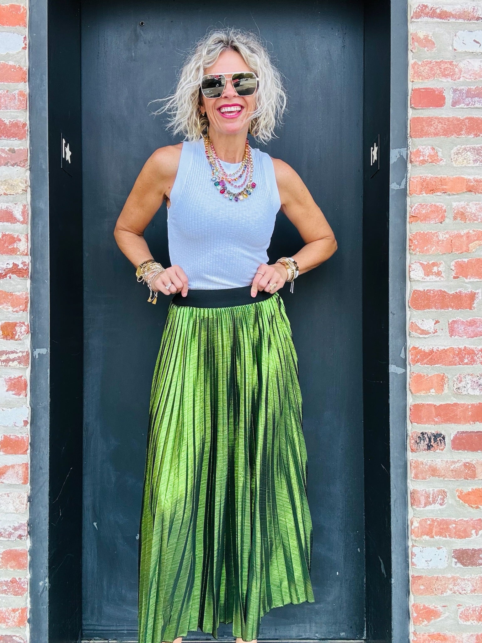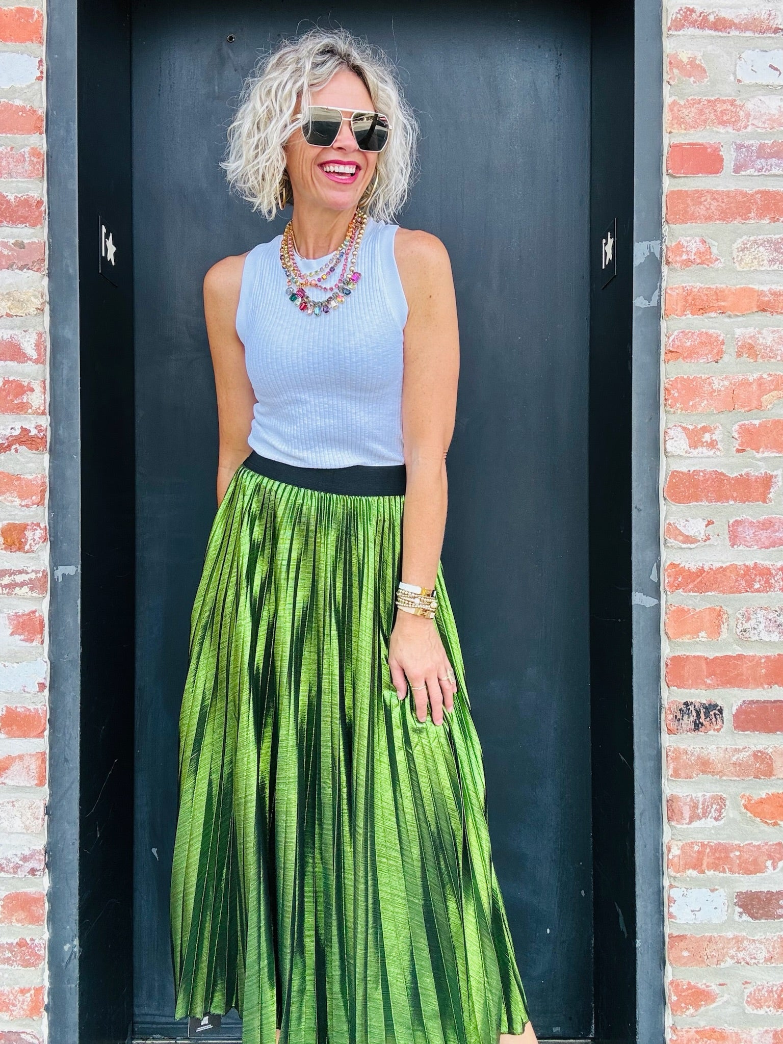 Get ready to stand out in this Green Maxi Skirt! With its vibrant green color and elegant style, you'll be sure to turn heads. Perfect for any occasion, this skirt is a must-have in your wardrobe. Embrace your unique style and make a statement with this playful piece.