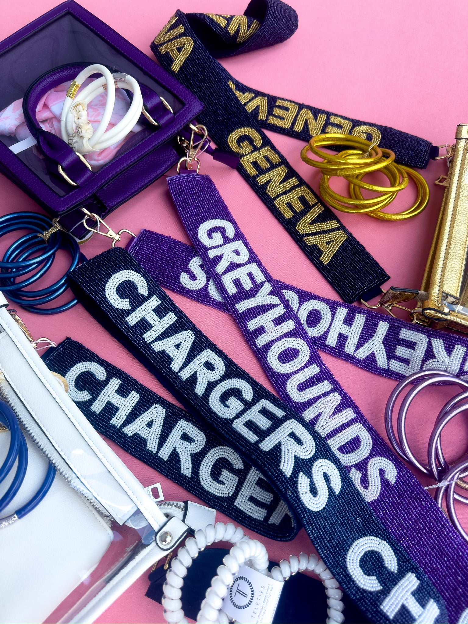 Get ready to soar to new heights with our Boerne Greyhounds Beaded Strap! Perfect for game day, this strap will elevate your outfit (and team spirit) with its playful design. Fly high with style and show your team pride like never before. (2 exclamation points)