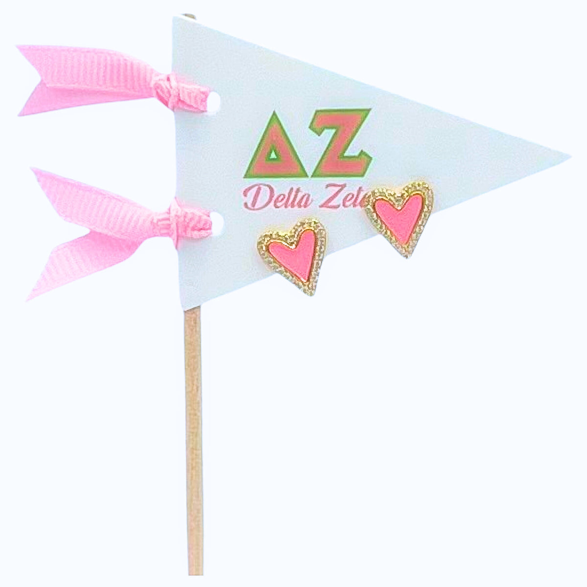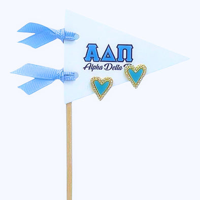 "Add a pop of color to your outfit with these enamal heart stud earrings. Perfect for adding a touch of love to any look.