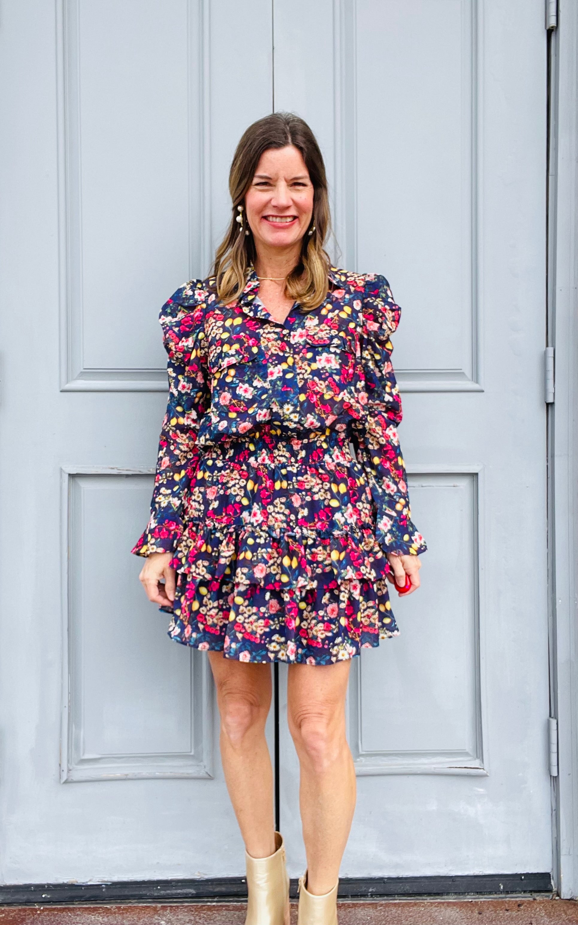 Adorned with intricate holiday florals, this mini dress is a true masterpiece. Crafted with premium materials, it boasts elegance and grace. Perfect for any holiday occasion, this mini dress is a must-have for the sophisticated and exclusive.