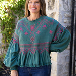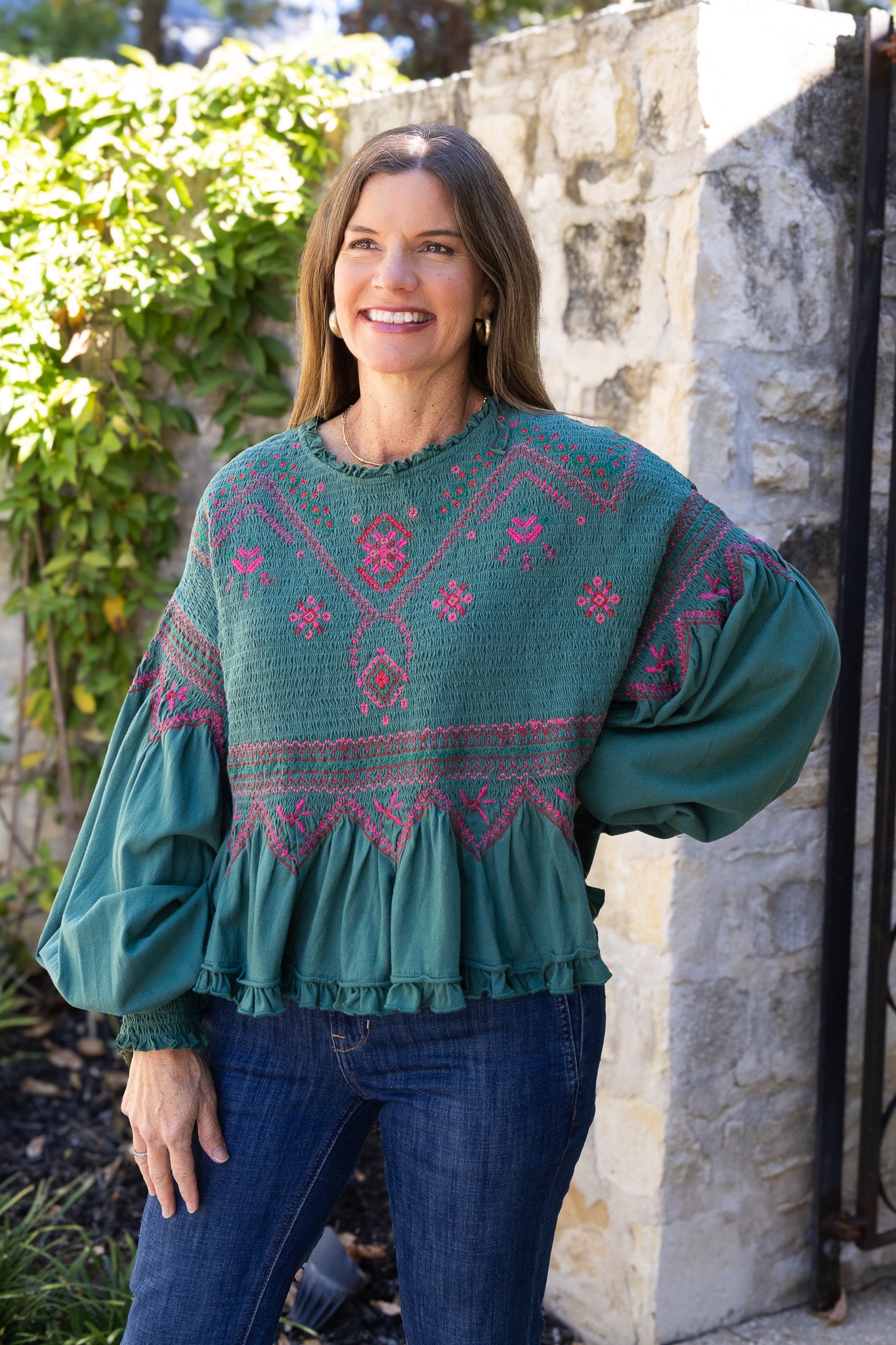 Breezy, billowy, and beautiful, this long-sleeve top features lightweight cotton fabrication, a flowy peplum design, and exaggerated balloon sleeves for an effortless silhouette.