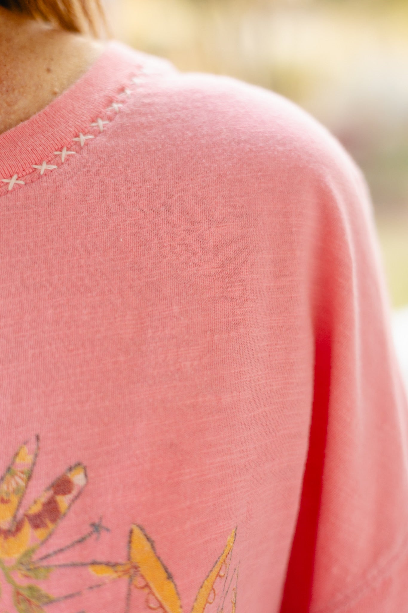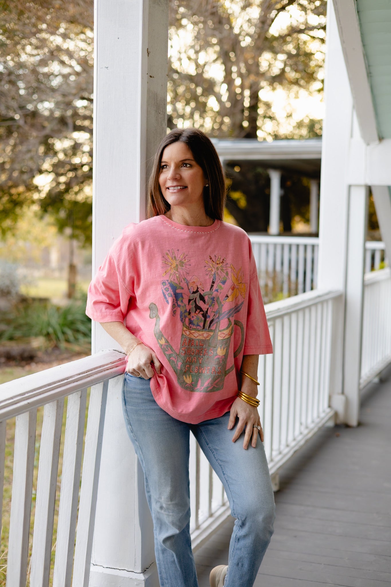 Embrace the Spring season in this adorable boxy tee featuring a floral graphic on the front and charming stitch detail along the neckline. The relaxed, boxy fit offers effortless comfort and a modern silhouette that works beautifully layered or worn solo. Perfect for spring adventures, casual hangouts, or whenever you want to add a pop of botanical charm to your everyday wardrobe. A playful staple that celebrates the joy of warmer days ahead.