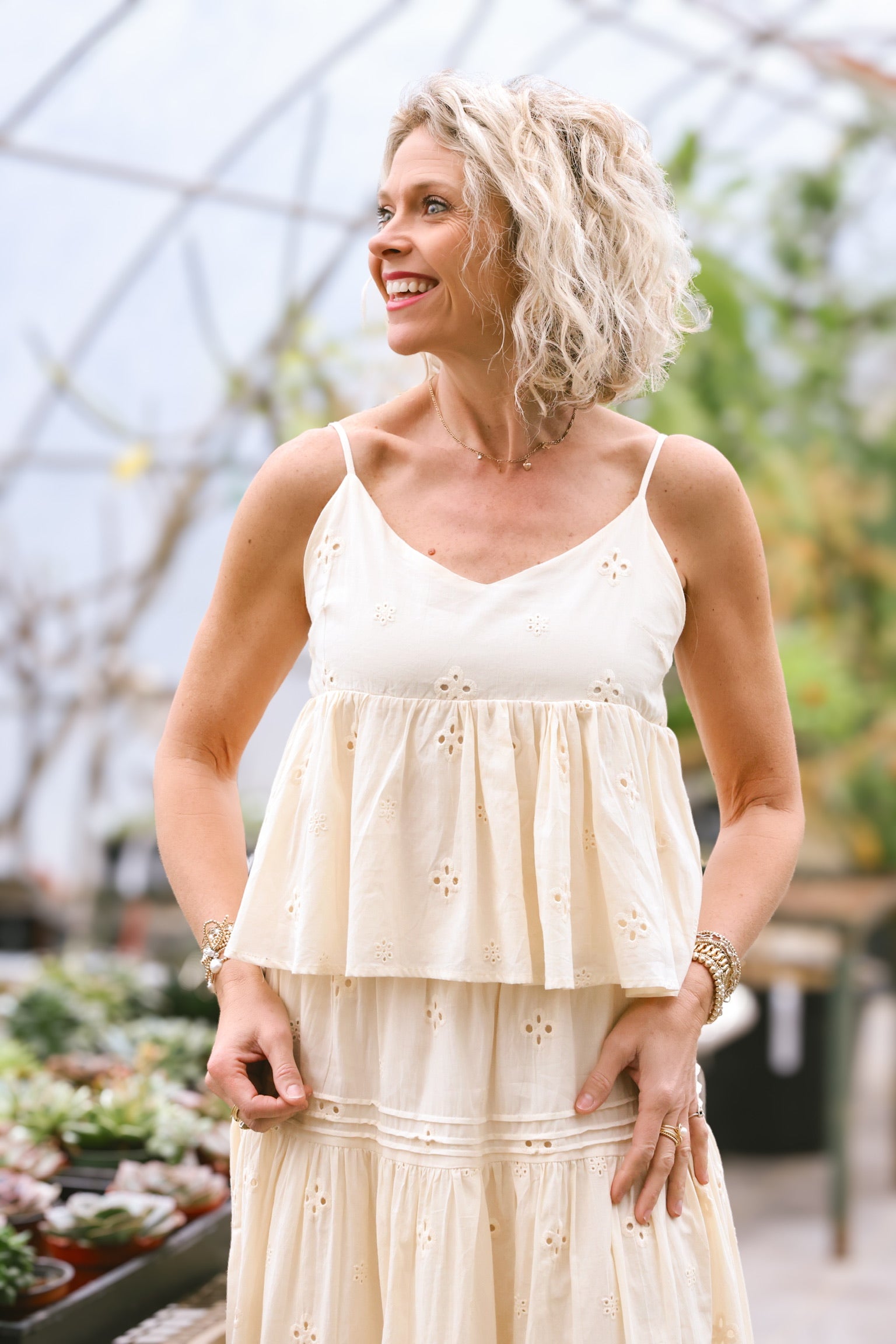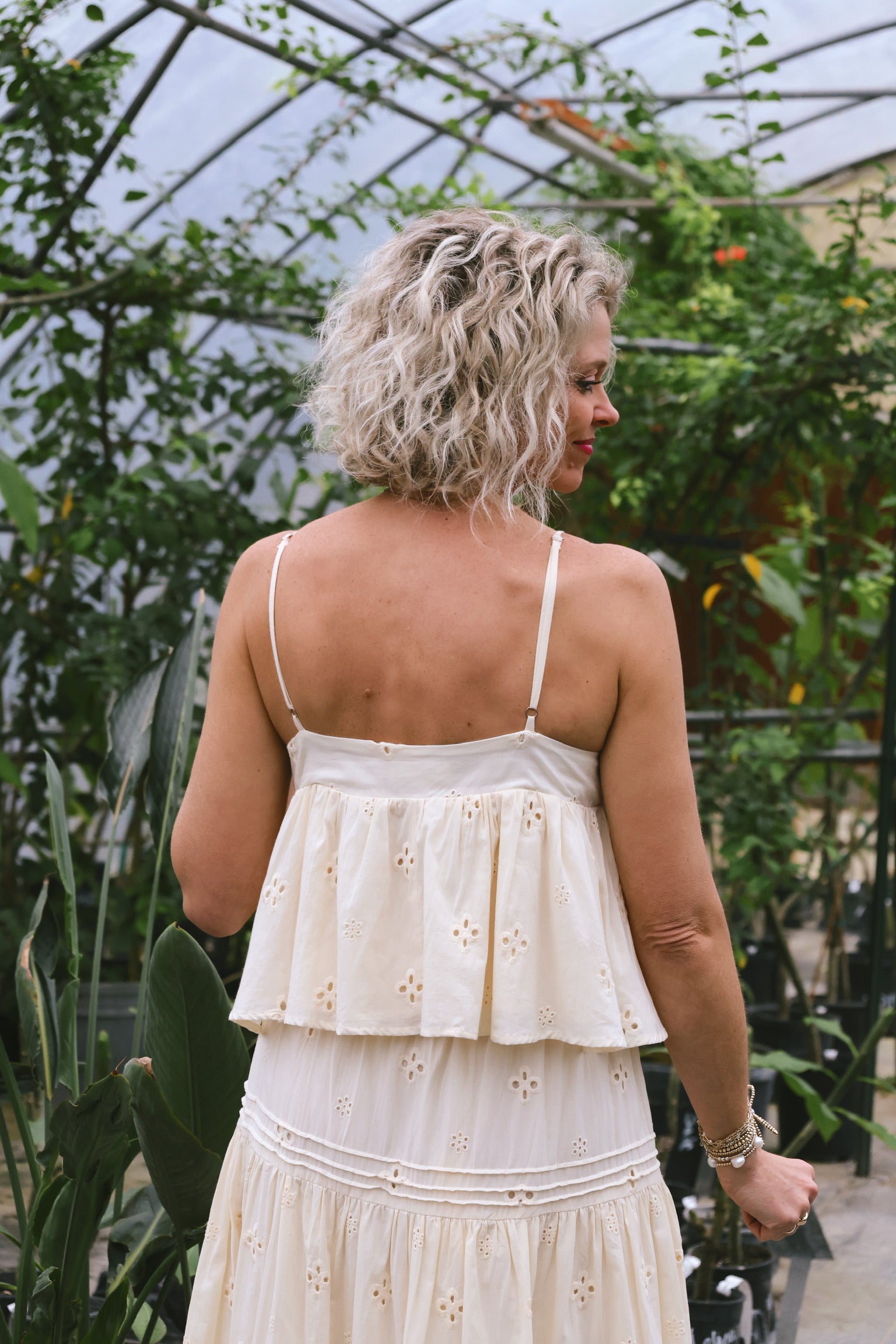 Pair up this ivory flowy tank with the matching maxi skirt or wear it on its own for a perfect boho look. Versatile and stylish, it's a must-have addition to your wardrobe. (Maxi skirt sold separately.)