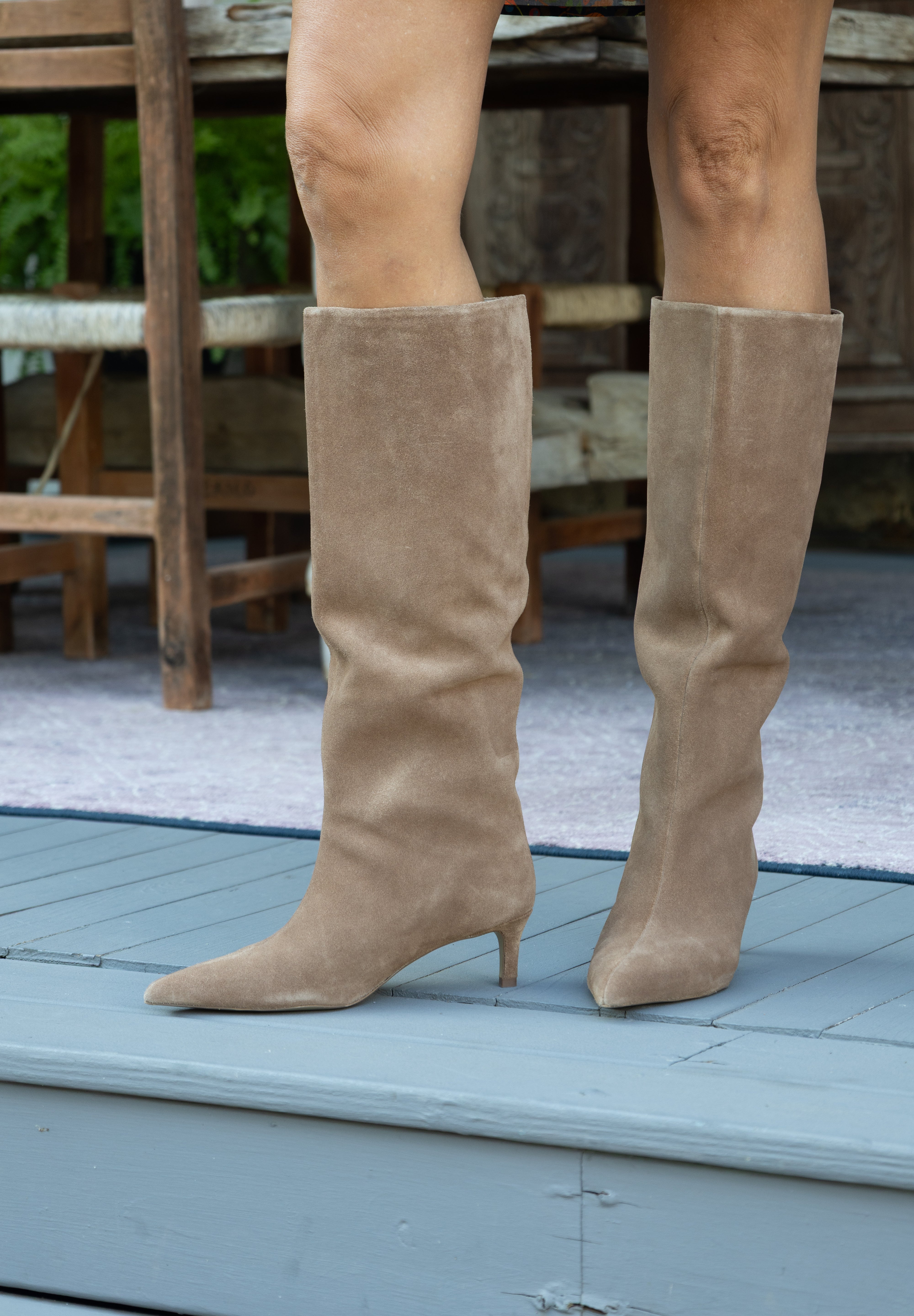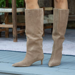 Step out in style with the Kiki Kitten Heel Suede Boot. This playful yet chic boot features a soft suede finish and a comfortable kitten heel, perfect for adding a flirty touch to any outfit. Whether you're headed to brunch or a night out, the Kiki offers a sleek silhouette that blends comfort with a dash of sass. Slip into these boots and let your feet do the talking.