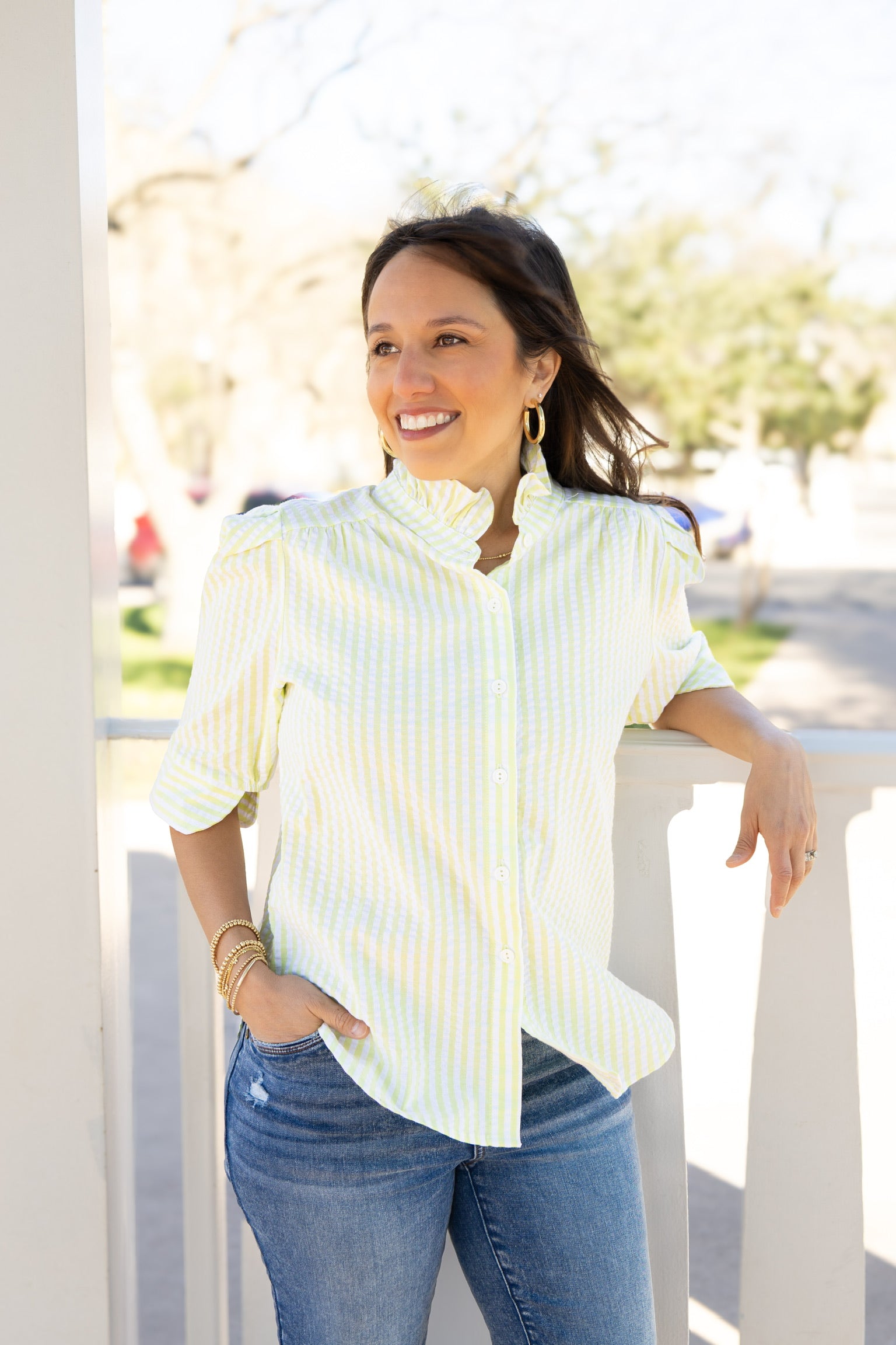 Lime Seersucker Top