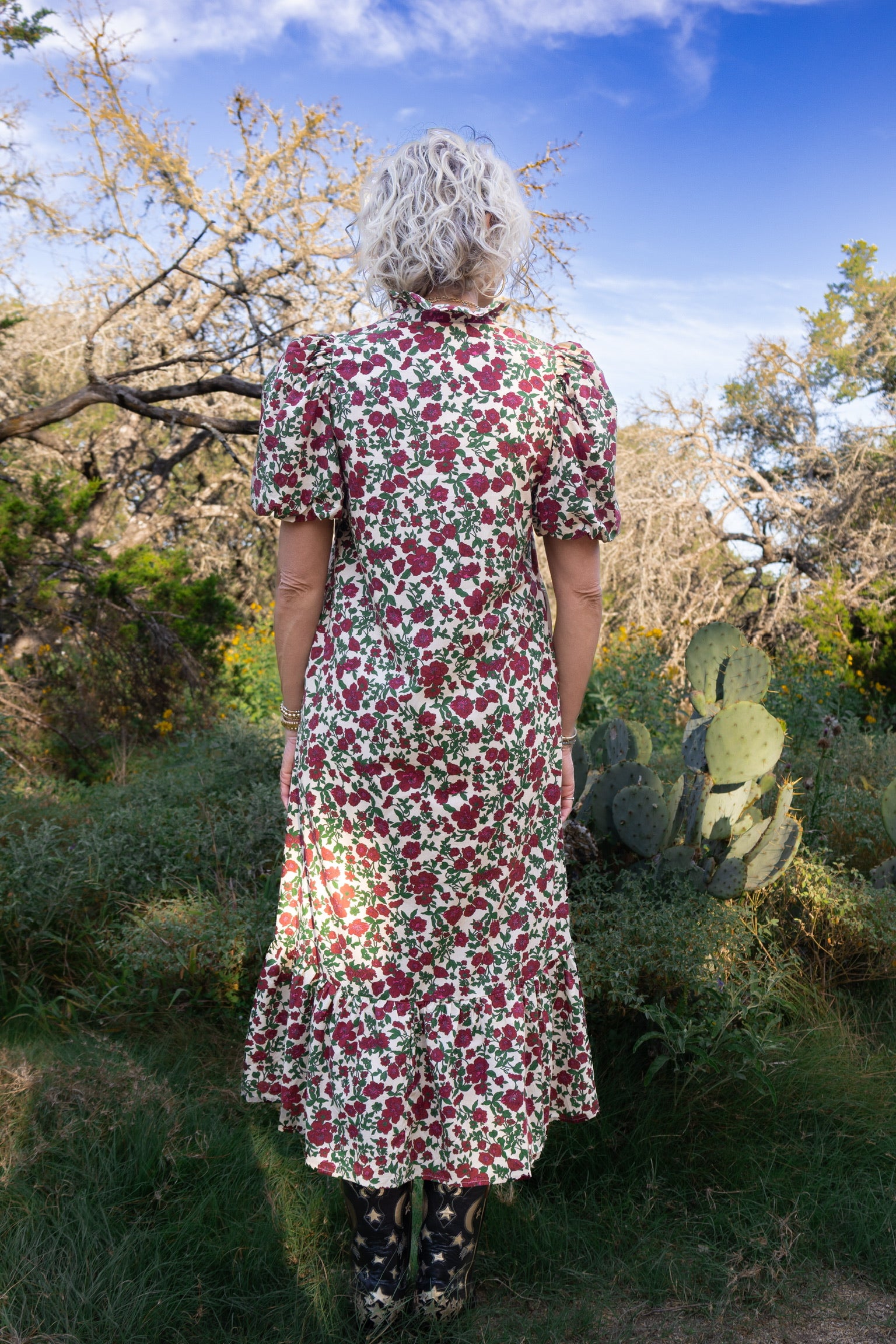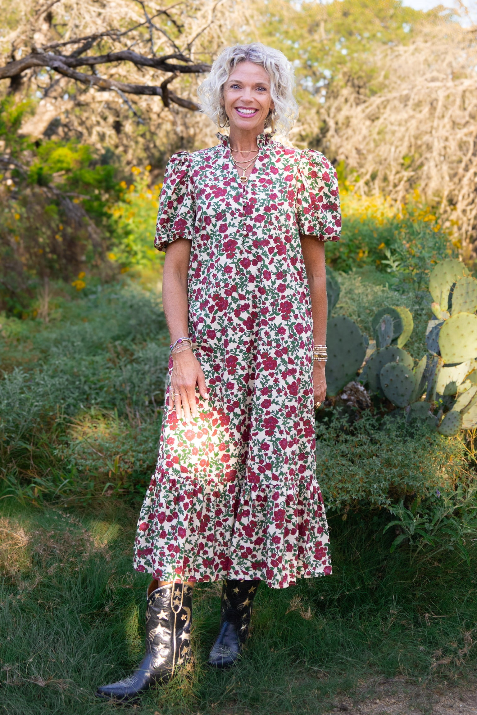 Step into charm with this maroon and ivory midi dress, featuring playful puff sleeves that add a fun, flirty touch. The flattering midi length makes it perfect for any occasion, while the rich maroon shade combined with soft ivory accents creates a beautifully balanced look. Embrace effortless style that moves with you and brightens your day.