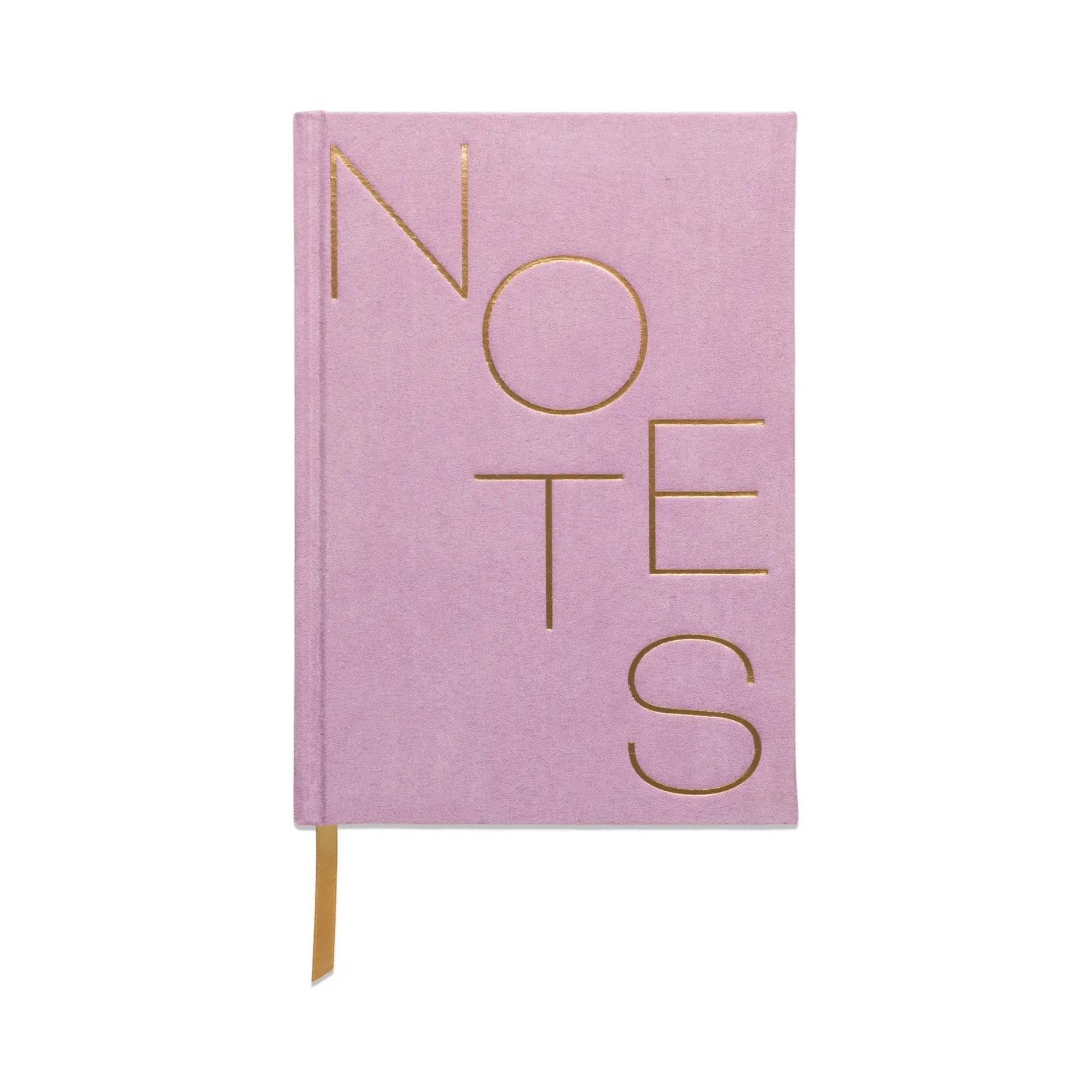 Turn a new page with the DesignWorks Ink Hard Cover Suede Cloth Journal With Pocket - Notes. Featuring a soft-to-the-touch sueded paper cover and gold text design, this cute journal is the perfect balance of form and function. The lined interior pages with day and month header are great for writing, notetaking, book journaling, and more. This pink journal notebook includes a gold ribbon bookmark so you never lose your place.