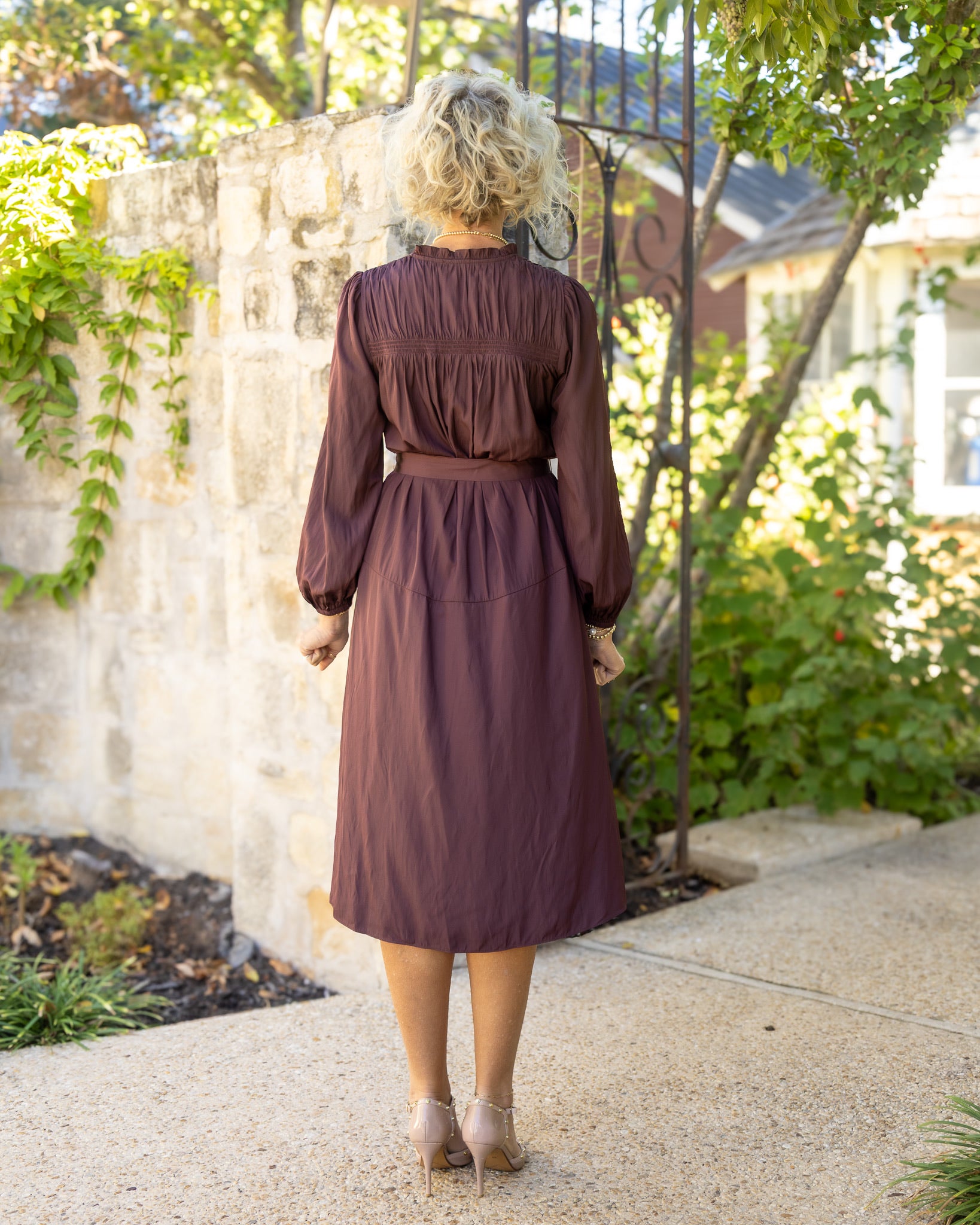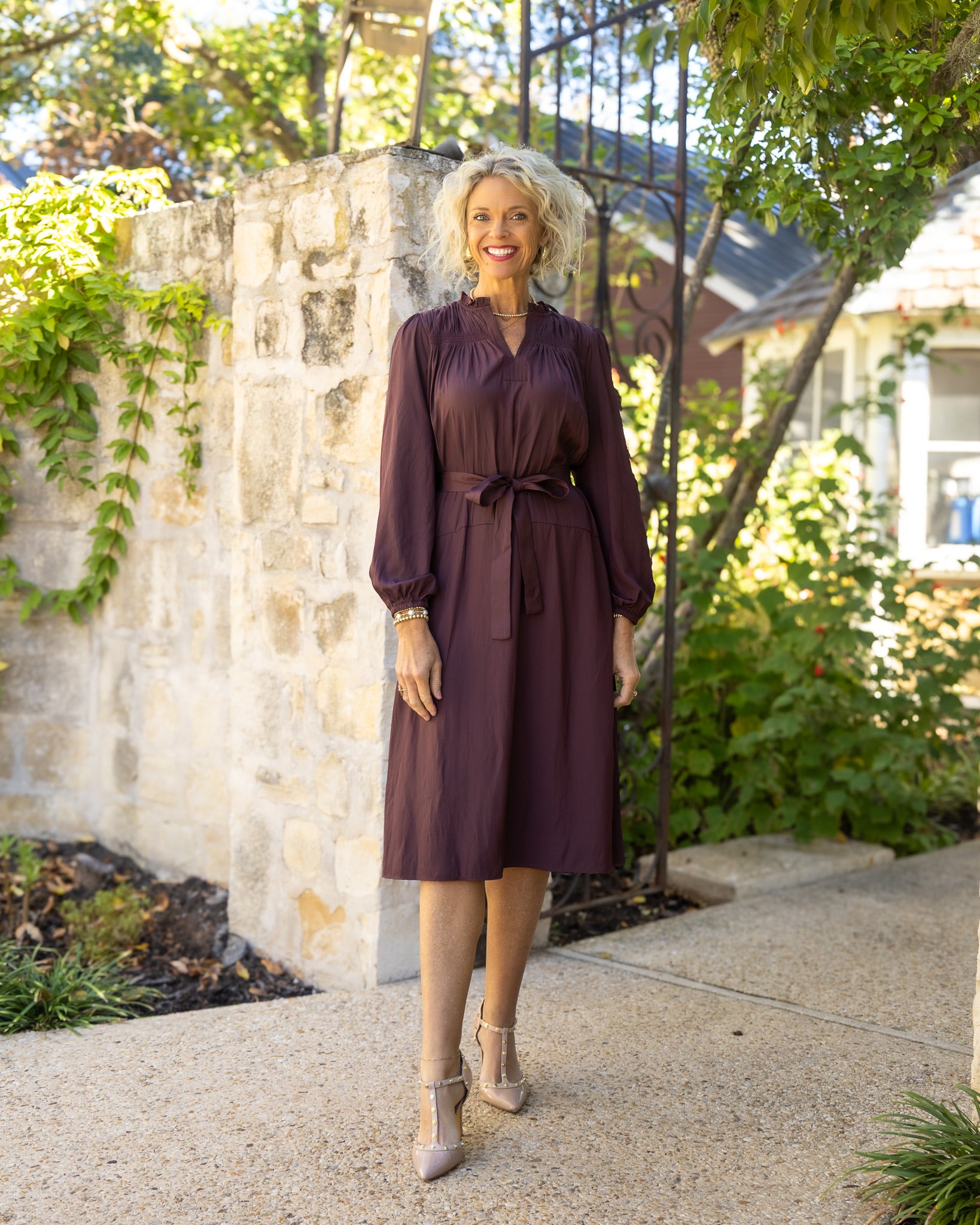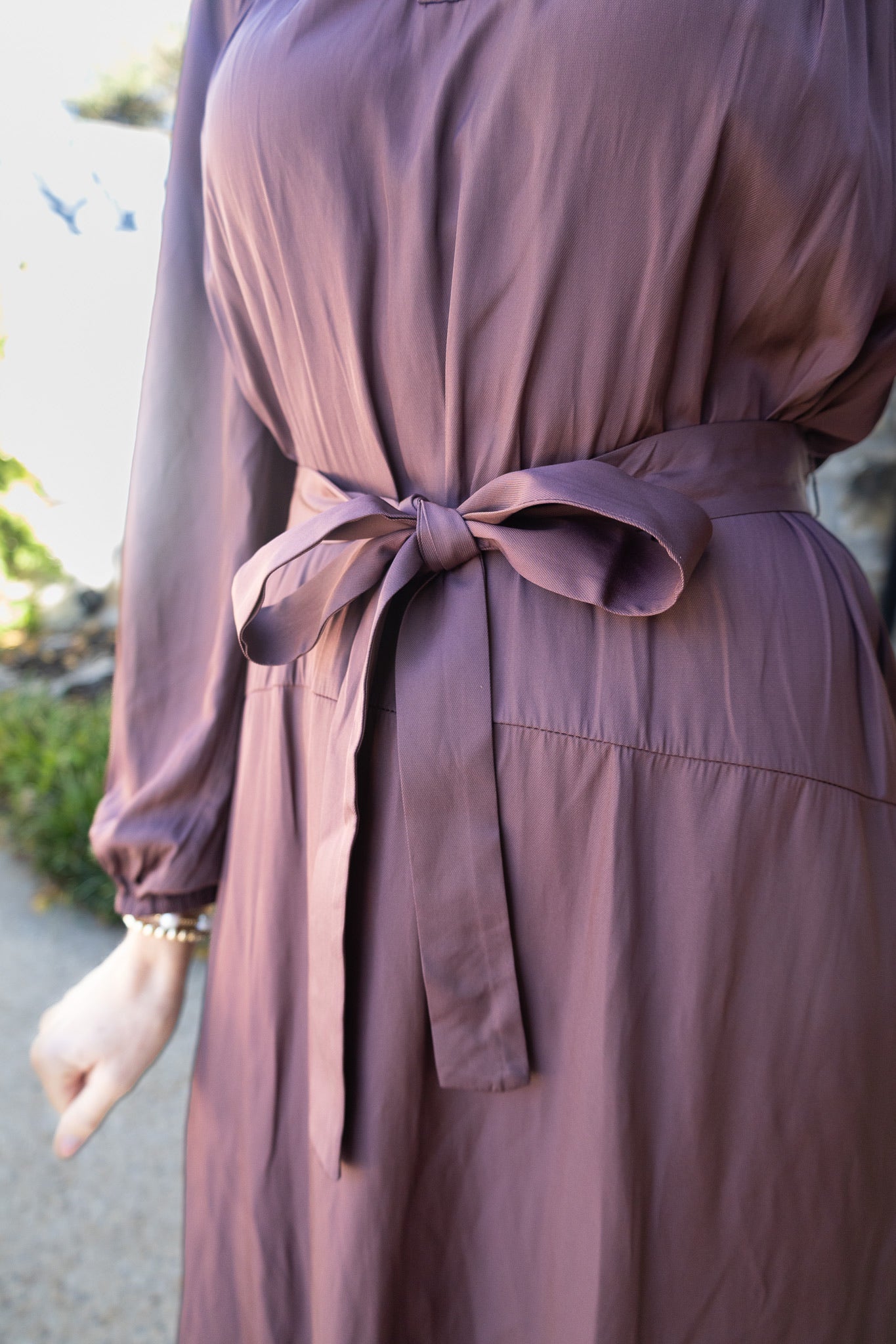 Slip into effortless elegance with this midnight plum mini dress that's equal parts chic and fun. The adjustable tie waist cinches your silhouette for a flattering fit, while long sleeves add a touch of sophistication and versatility. Perfect for date nights, casual outings, or whenever you want to feel put-together without trying too hard. This playful piece transitions seamlessly from day to night, making it a wardrobe essential that works as hard as you do.