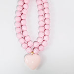 Wear your heart on your sleeve—or better yet, around your neck! This charming pink heart pendant captures the essence of carefree elegance with its sweet light pink hues. Suspended from a beaded chain.