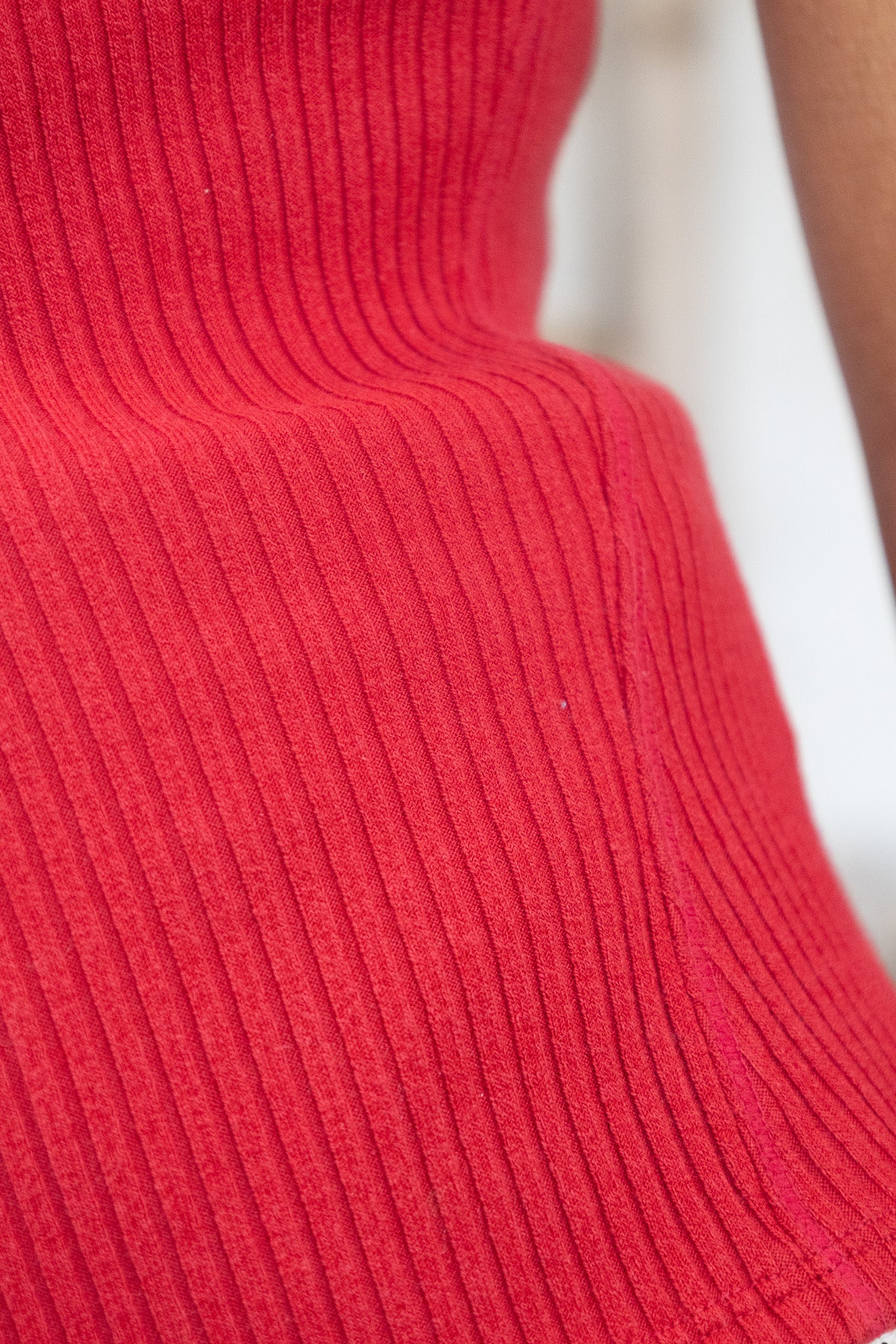 Cute and classic, this shrunken cardi is featured in a hugging ribbed fabrication with short capped sleeves and buttons all the way up the front.