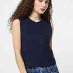 The perfect balance of comfort and chic. Add a touch of effortless elegance to your collection with our Mozart Knit Crew Neck Sleeveless Vest. Perfect for those who appreciate simplicity and style, this vest is a must-have piece for your fashion-forward wardrobe with a minimalist sleeveless body in a classic soft knit and contemporary box fit.