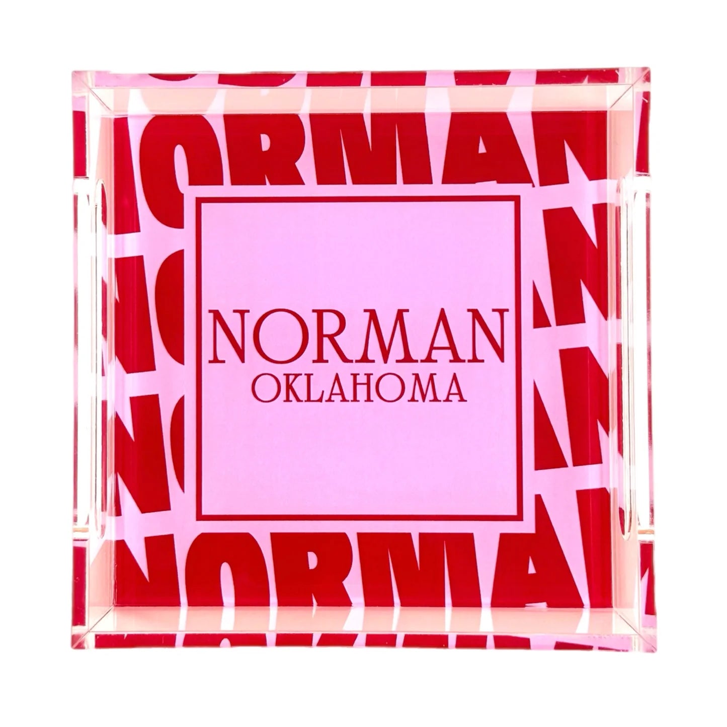 Brighten up your space with the Norman Oklahoma Small Tray, crafted from durable acrylic to hold your favorite trinkets or snacks. Its compact size makes it perfect for desks, nightstands, or coffee tables, adding a playful touch of Norman charm wherever you set it. Easy to clean and ultra-versatile, this tray is a fun way to keep things tidy with a Lone Star twist.