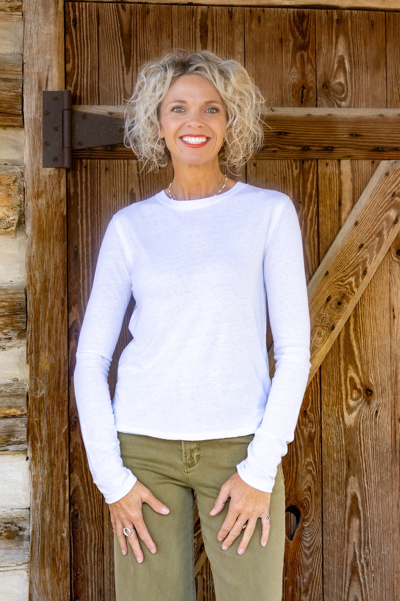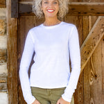 This perfect Long sleeved tee features a soft heathered fabrication and perfectly laidback silhouette with raised seams for added texture.