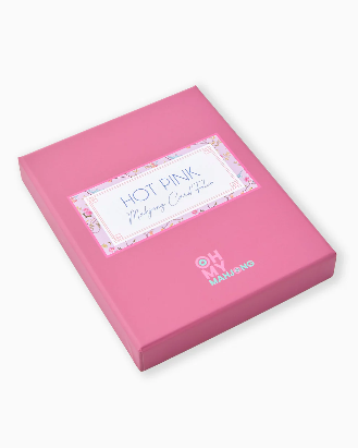 The Mahjong Card Folio is the perfect blend of style and function, designed to store and protect your National Mah Jongg League playing card(s) in chic, vibrant fashion. This stunning folio is crafted in collaboration with Catherine Cartie, The hot pink folio features her signature design from the OMM beloved Goldie Mat lining the interior, offering a touch of luxury with every play.