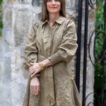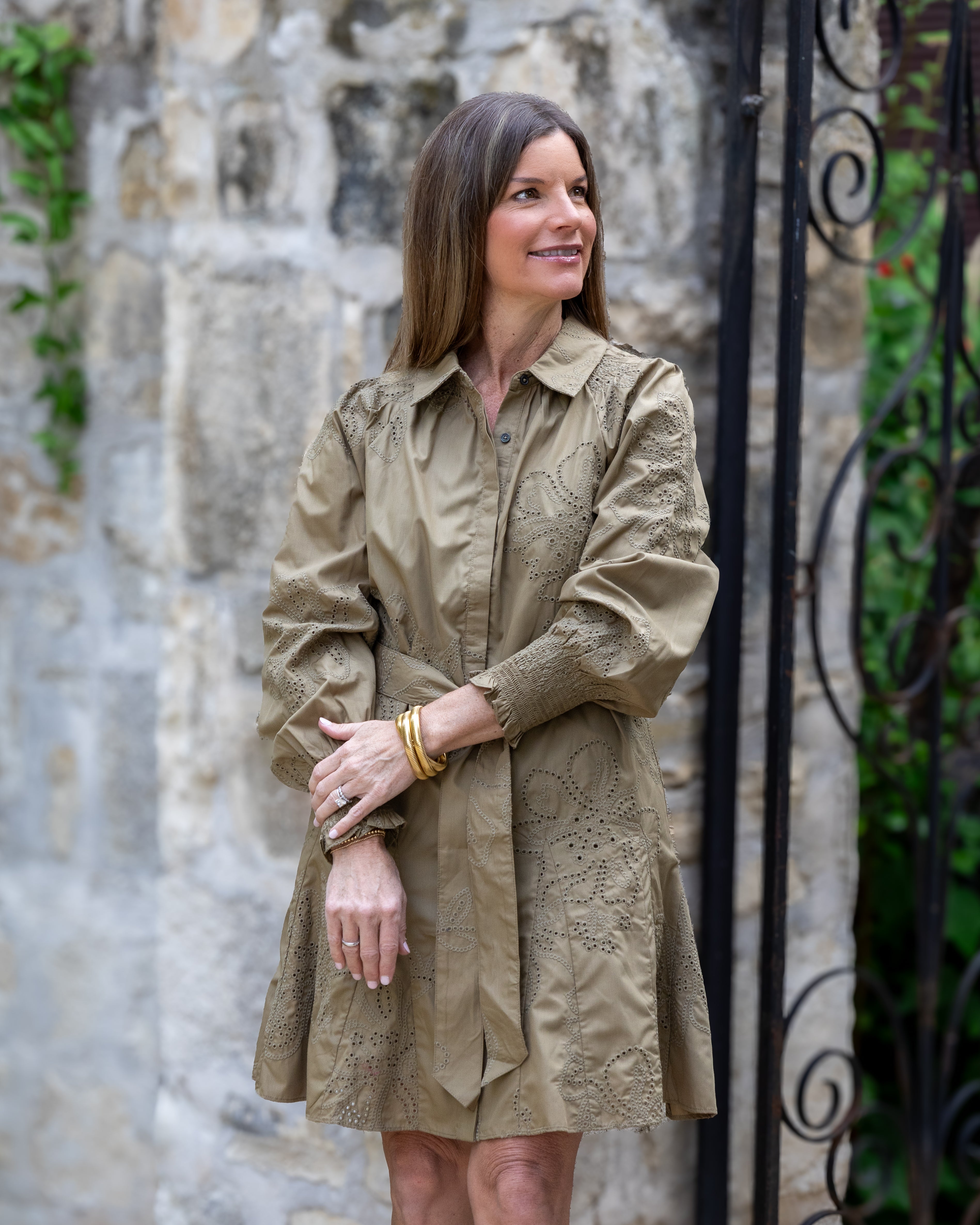 This playful olive green mini dress features delicate embroidery, long sleeves, and a flattering tie waist that highlights your silhouette. The classic collar and front buttons add a touch of charm, while the included liner ensures comfortable wear all day and night. Perfect for fun outings or casual get-togethers, this dress combines style and ease effortlessly.