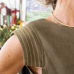 Slip into effortless style with this olive midi dress. Designed with short sleeves and a flattering fitted silhouette thanks to chest darts, it's the perfect everyday piece. Two front pockets keep your essentials close, while contrast stitching adds a playful touch of detail.