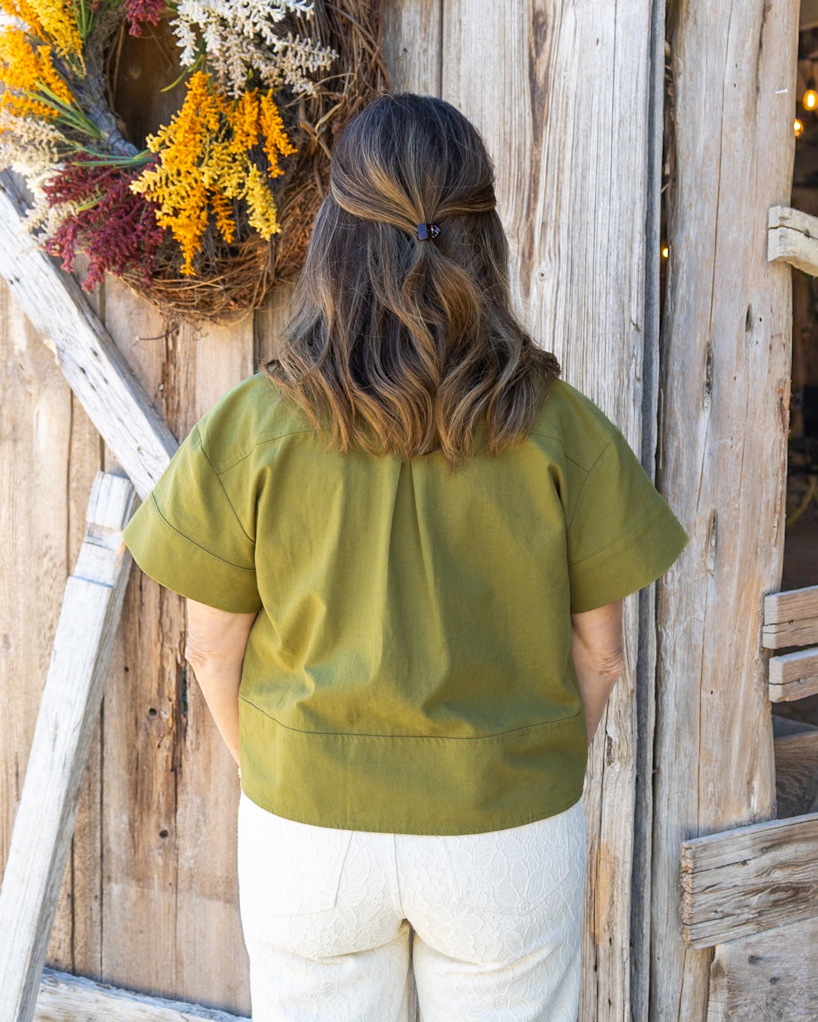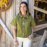 Effortless style meets comfort in this olive cotton button-down. The cropped silhouette flatters every frame, while the front pocket adds practical charm. Short sleeves keep things breezy, and the soft cotton fabric feels as good as it looks.