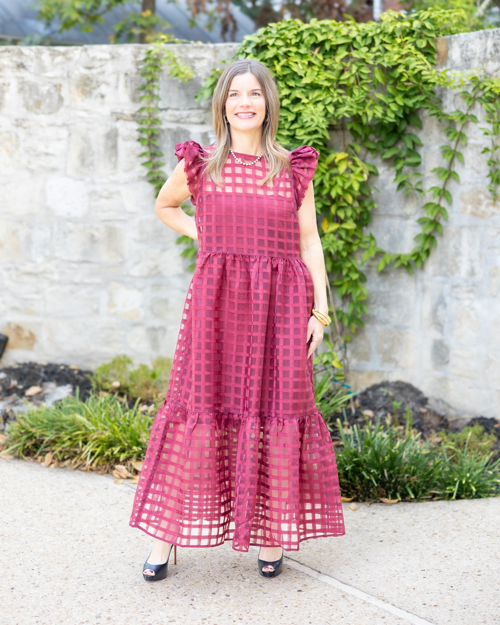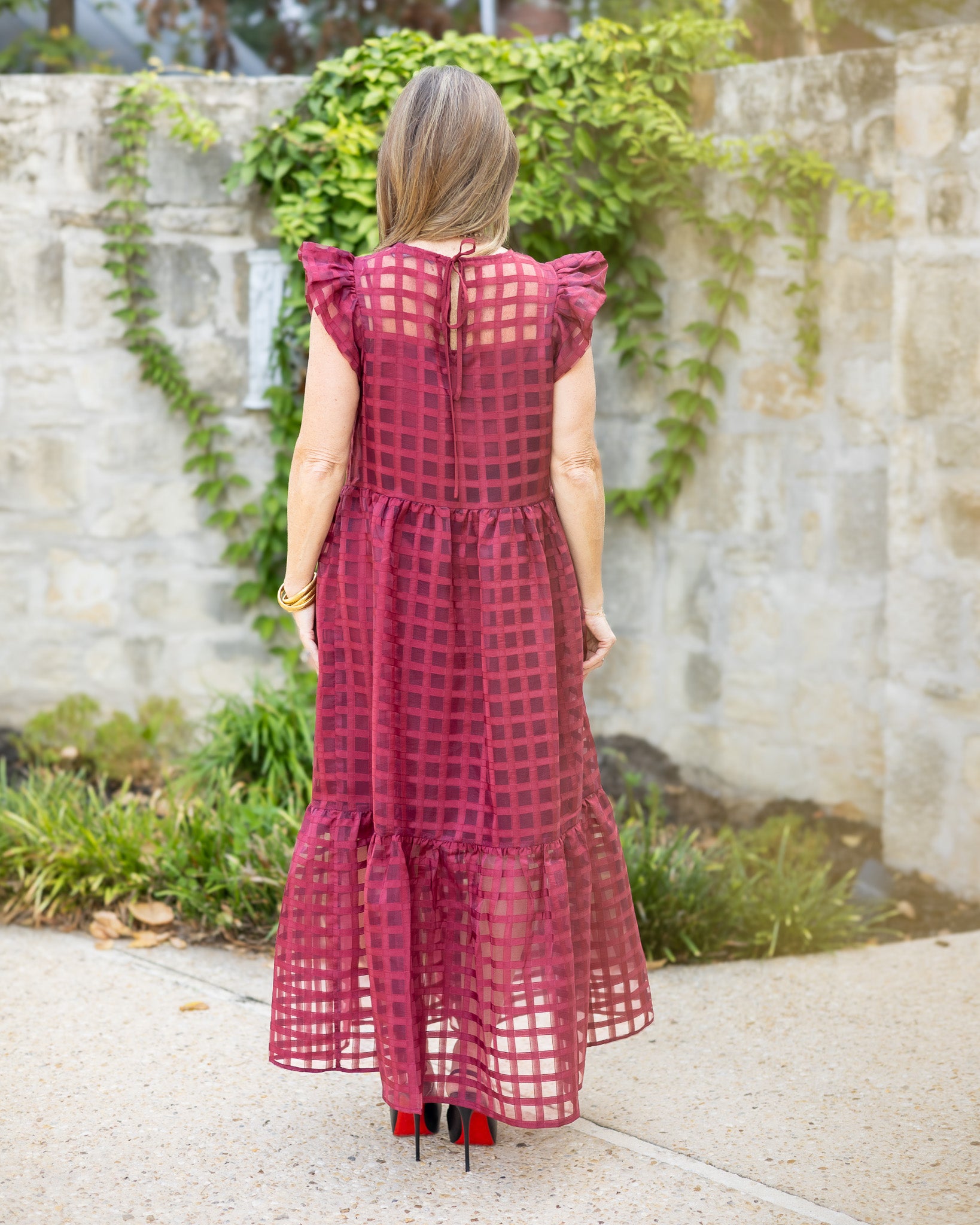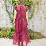 Maroon Organza Midi Dress