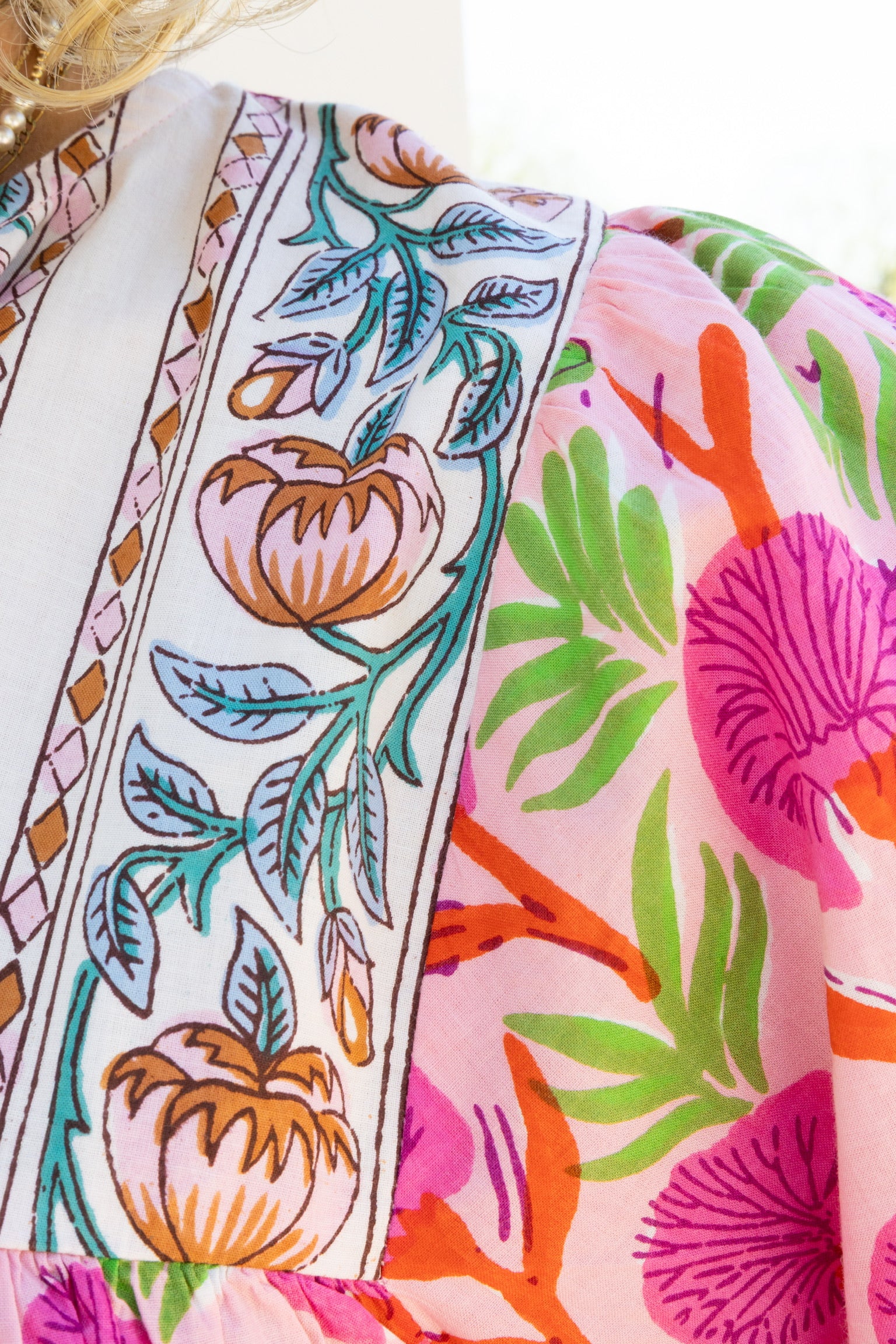 Pink Puff Sleeve Floral Top