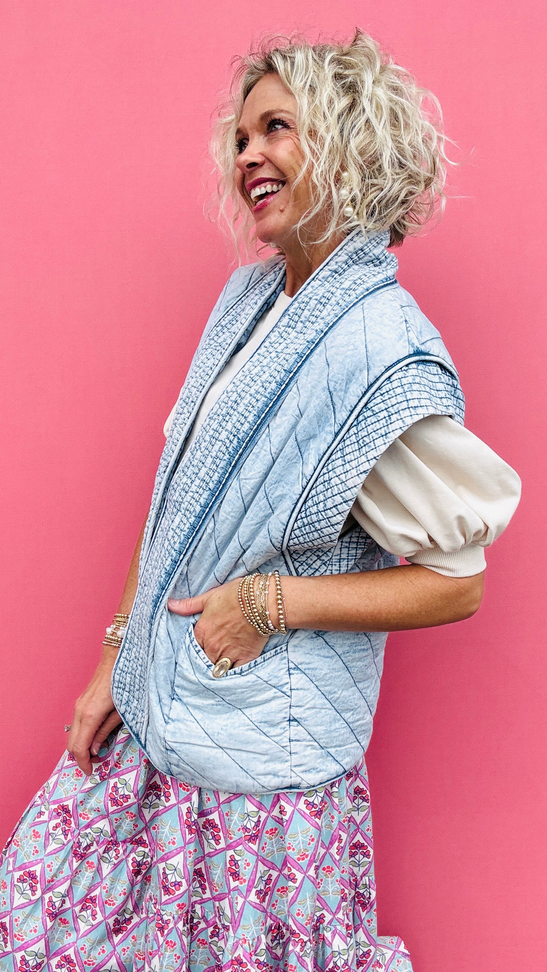 Quilted Denim Vest