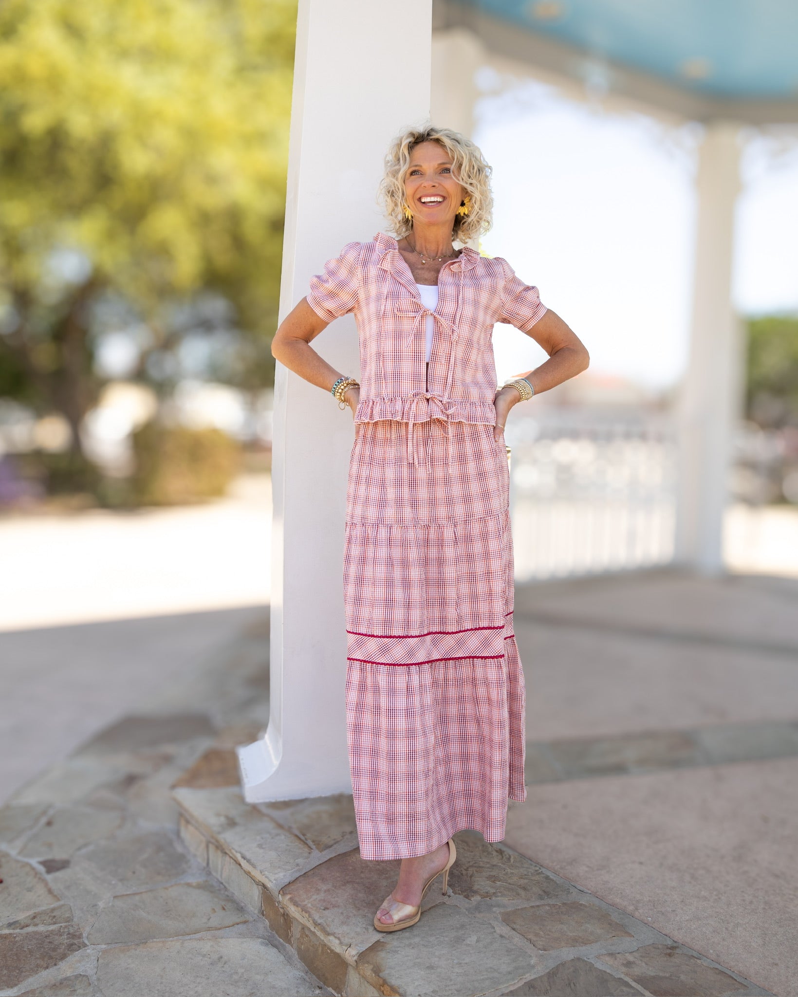 This red plaid tie top is the perfect mix of cute and quirky. With a little ruffle detail at the bottom, you'll be stylish and playful at the same time. Tie it up and rock that plaid, girl!