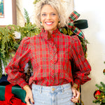 Wrap yourself in festive charm with this classic red plaid button-up top! Featuring a timeless plaid pattern in rich Christmas red, this long sleeve beauty is perfect for holiday gatherings and cozy winter days. The charming ruffle detail adds a playful touch that elevates your seasonal style. Easy to dress up or down, this versatile piece pairs beautifully with jeans, skirts, or holiday pants for endless outfit possibilities.
