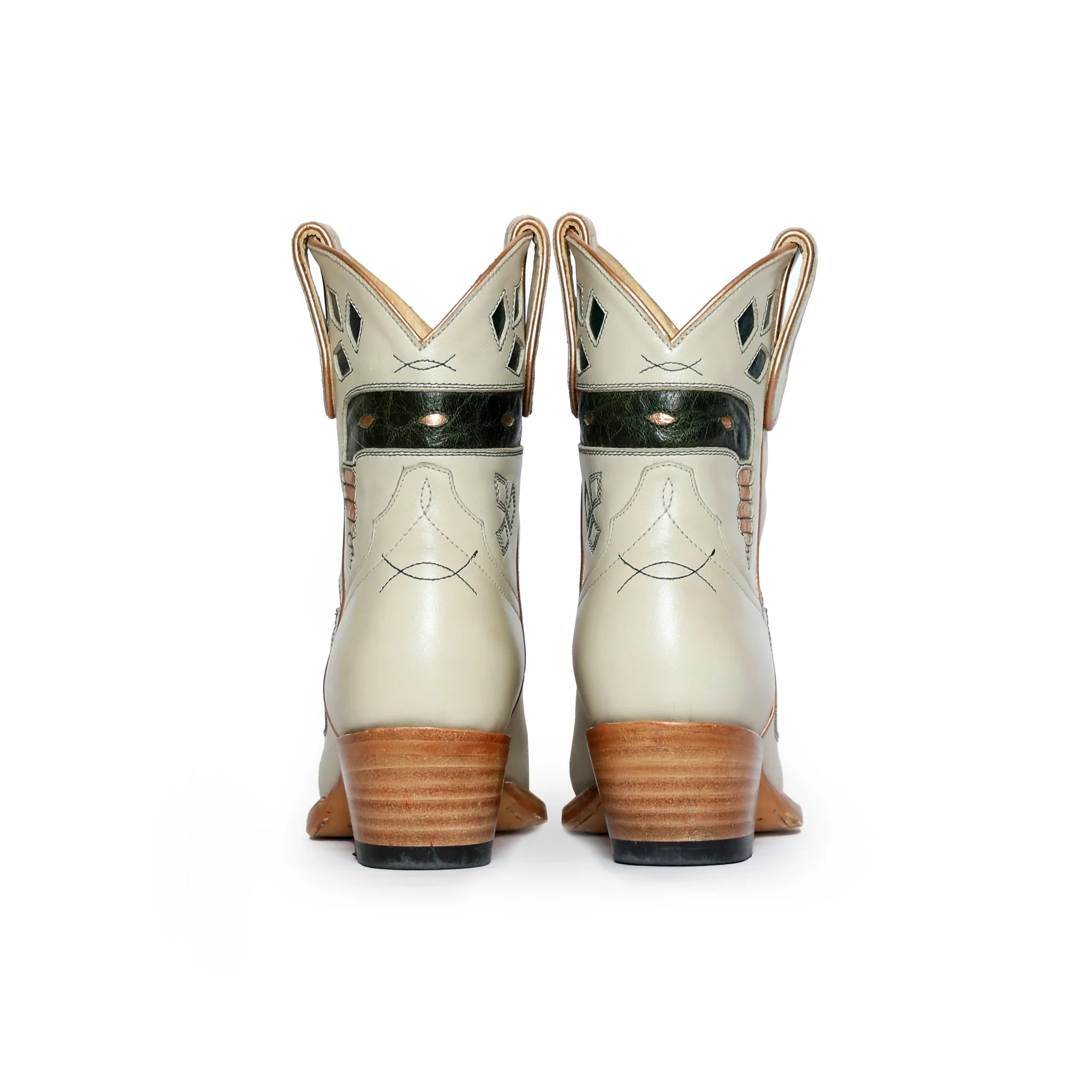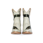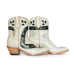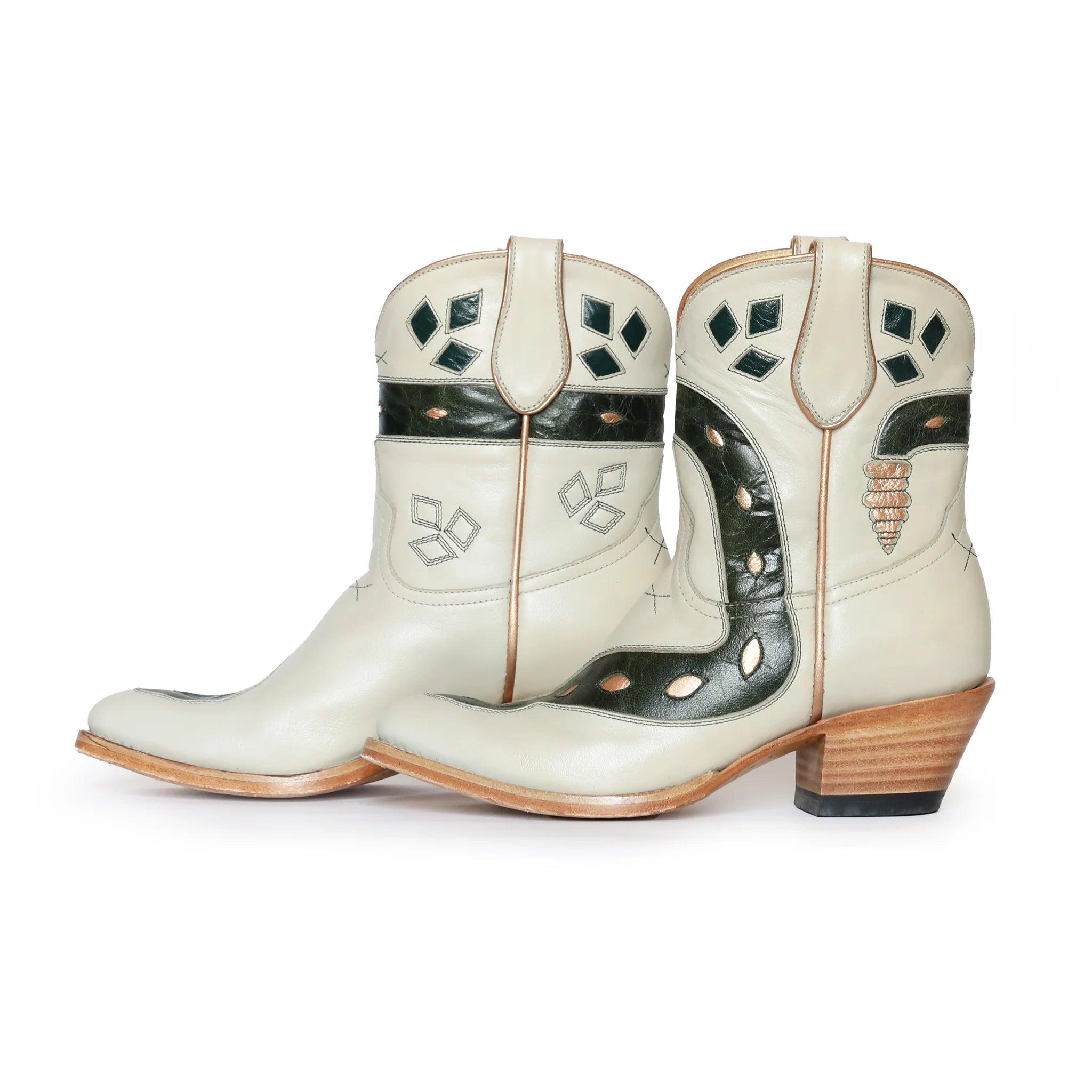 As little girls, we were totally enchanted by the Tom T. Hall song, Sneaky Snake. It was the inspiration for this boot. Snakes on the ground are scary, snakes in art are awesome! Sing along...