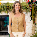 Effortless layering meets laid-back style with this button-front sleeveless vest. Crafted from breathable Tencel fabric, it's the perfect piece to throw over your favorite tee or dress up with a crisp button-down. Whether you're heading to brunch or running errands, this versatile vest adds instant polish without the fuss. Layer it, love it, repeat.
