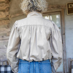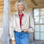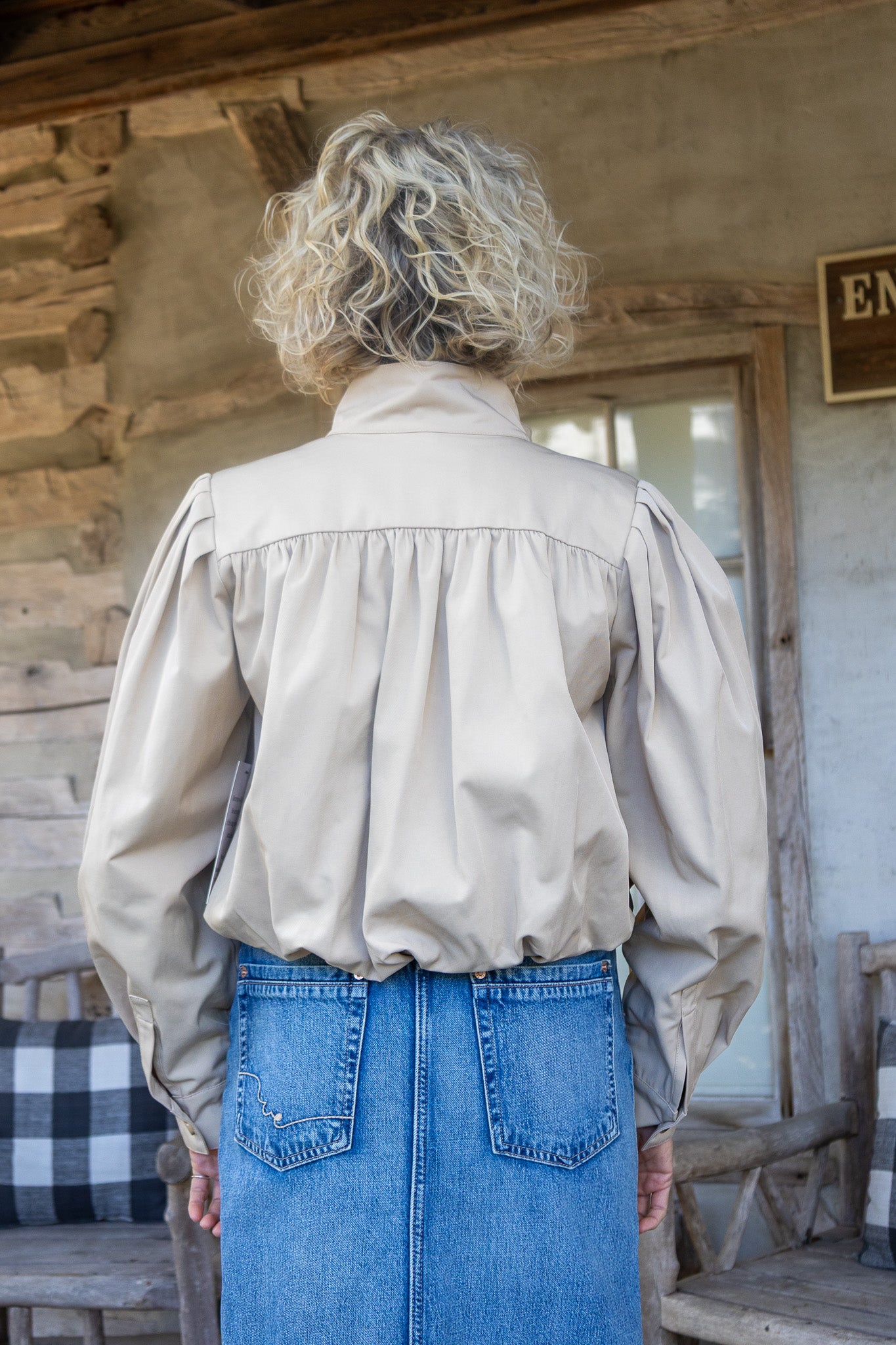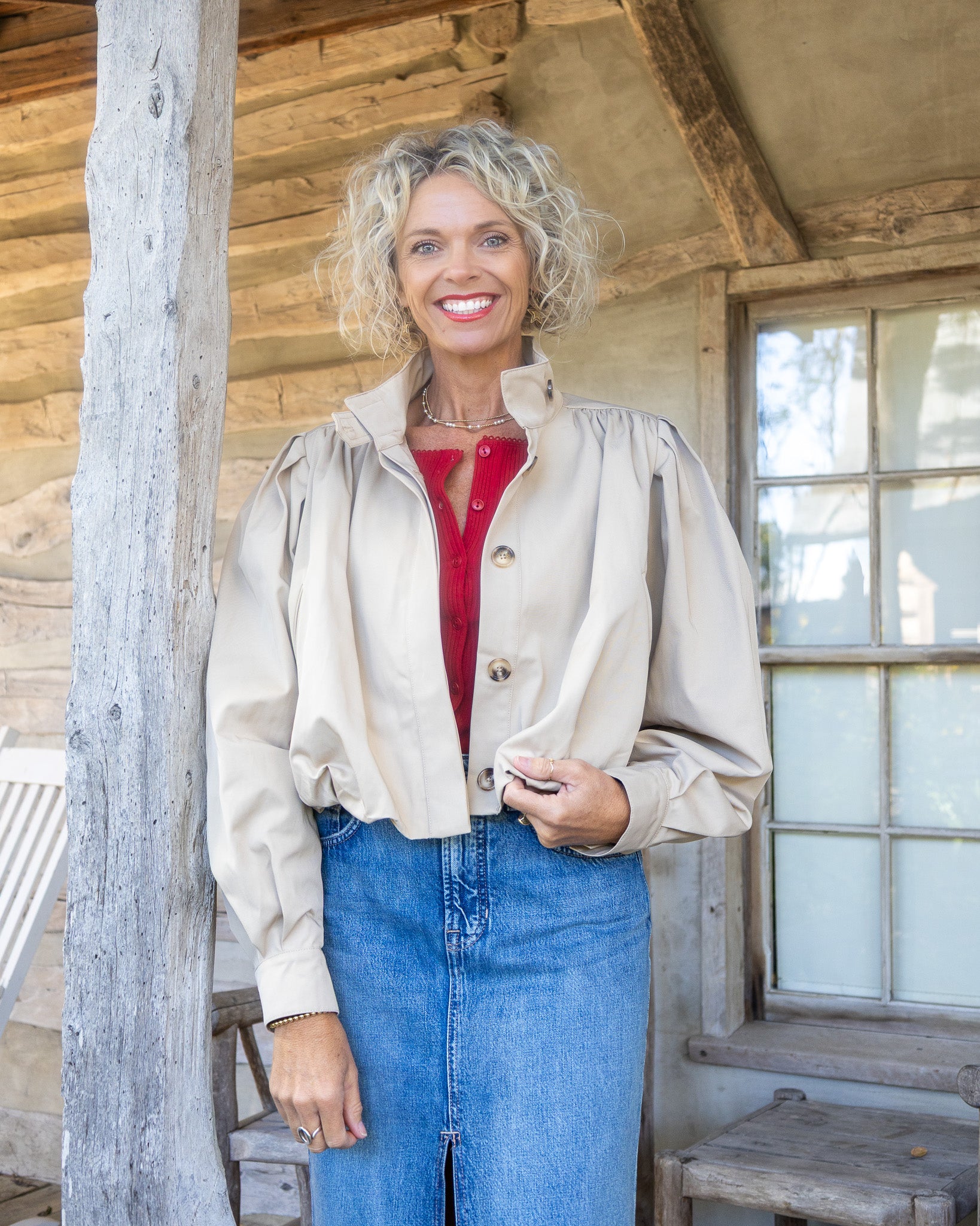 Step out in style with this playful beige shirred trench short coat. Its cropped fit adds a modern twist to a classic silhouette, while the shirred detailing gives it a fun, textured look. Perfect for layering over your favorite outfits, this coat keeps things light and breezy with just enough coverage to keep you comfy and chic all day. Make every day an adventure in this charming and easygoing trench!