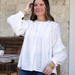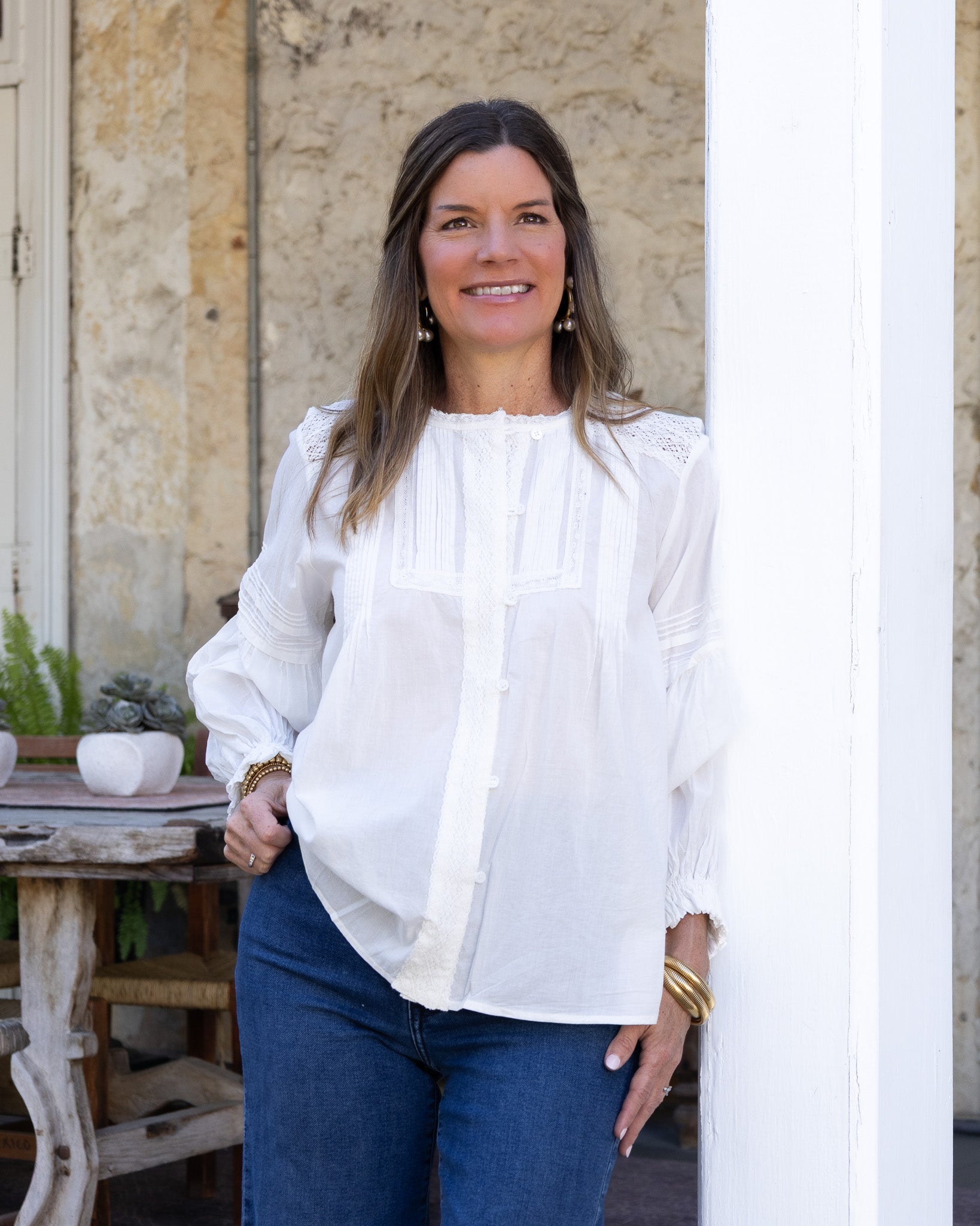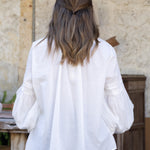 The White Devi Top by FRNCH combines timeless elegance with playful detailing. Its crisp white fabric and long sleeves create a classic silhouette, while intricate design touches add a fun, flirty vibe. Perfect for dressing up or down, this top brings fresh charm to any outfit.