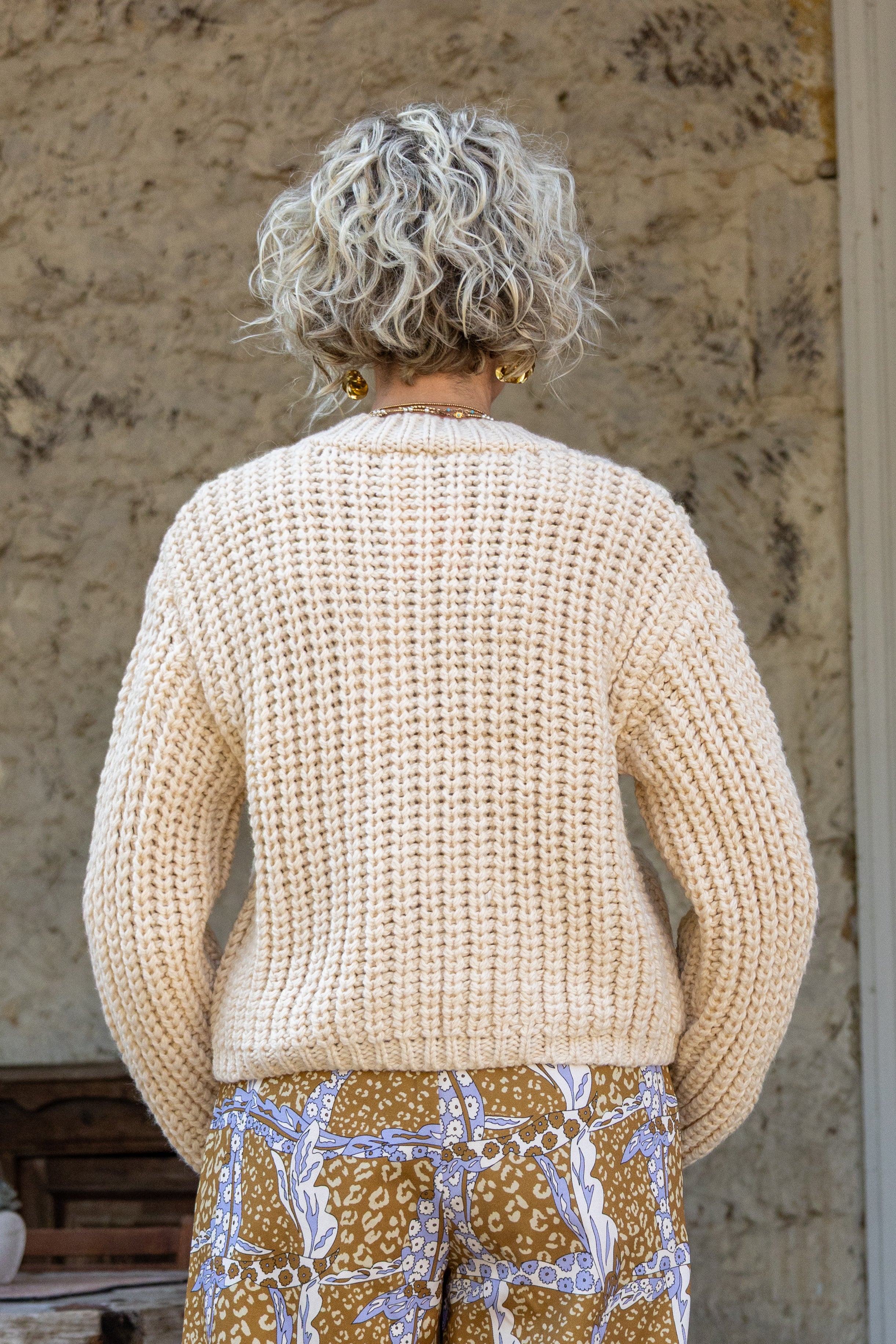 Wrap yourself in cozy charm with this cream Sweater! This soft cable knit delights with bold gold buttons lining the front, adding just the right touch of sparkle. Two handy front pockets keep your hands warm or stash your essentials as you go. Perfect for layering on chilly days, it’s the playful upgrade your wardrobe has been waiting for.